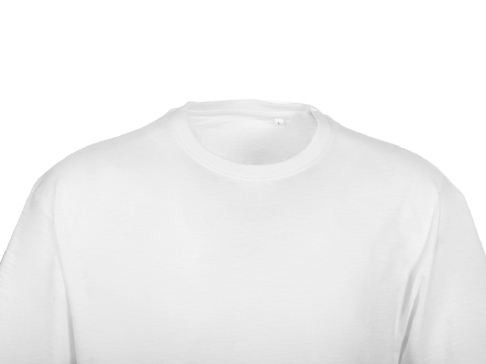 Полотно футболки имеет необычную структуру - с протяжками, но при этом гладкую поверхность, что обеспечивает идеальную поверхность для нанесения: прямая печать, трафаретная или термотрансфер прекрасно ложатся на такое полотно. Декоративная отстрочка по низу рукавов и изделия, а также отстрочка по горловине позволяют футболке дольше сохранять форму.