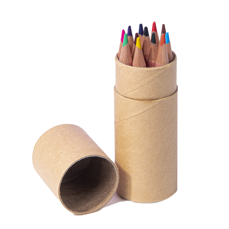 Набор из 12 цветных карандашей MИНИ в крафтовой тубе. Круглый корпус из