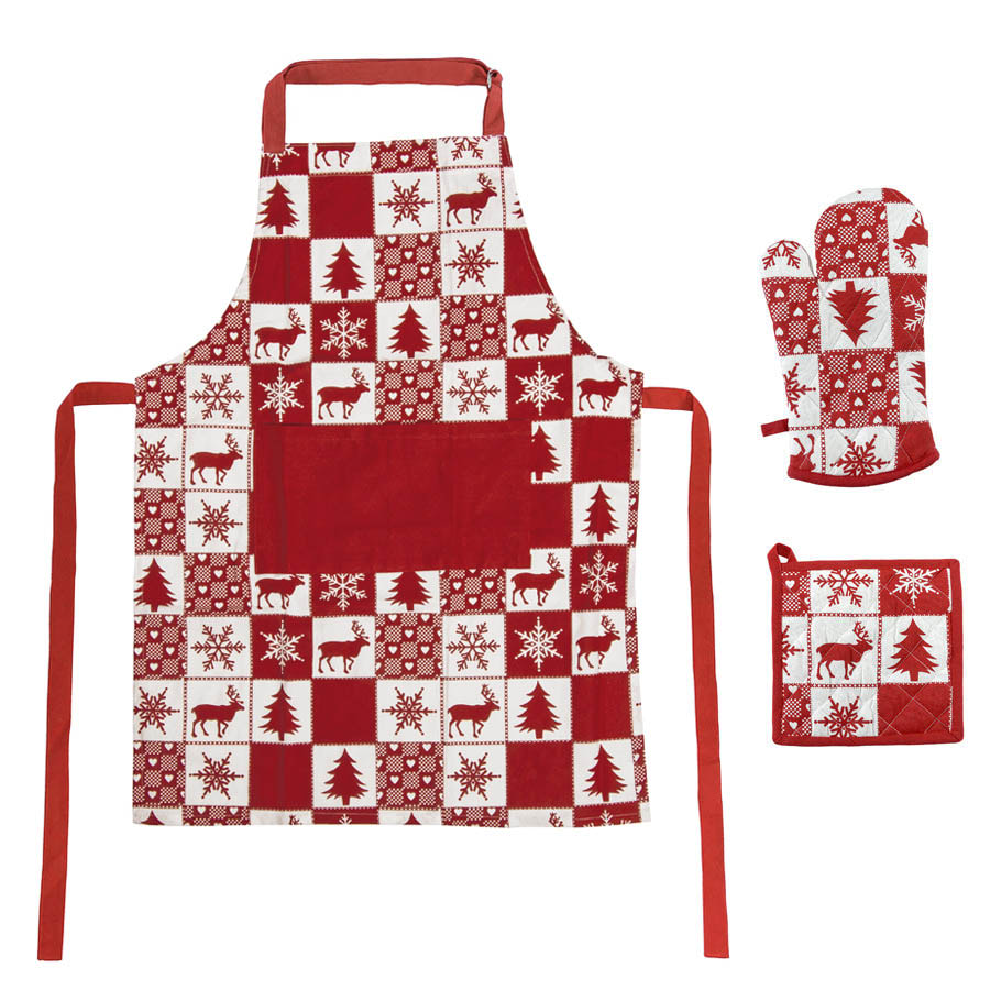 Подарочный набор для кухни 'Новогодний',хлопок 100%, фартук и прихватки, белый, красный