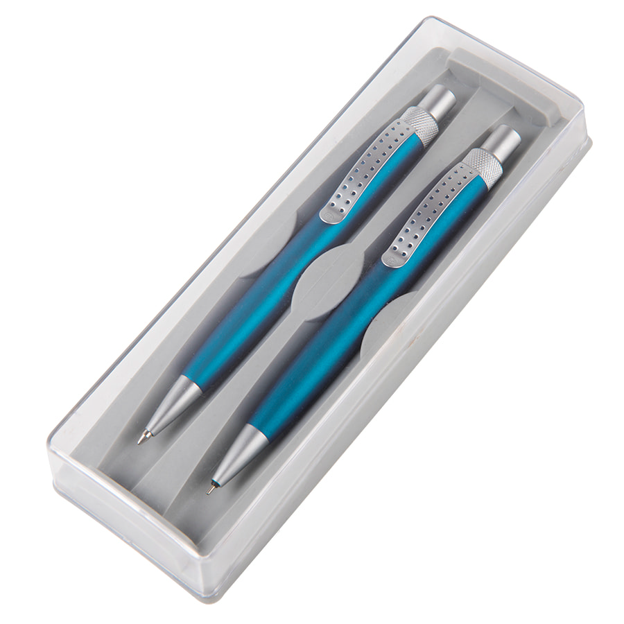 Набор SUMO SET, ручка и карандаш в футляре, бирюзовый, серебристый