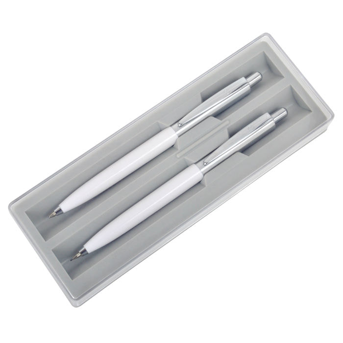 BUSINESS SET, набор: ручка шариковая и карандаш механический в футляре, белый, серебристый