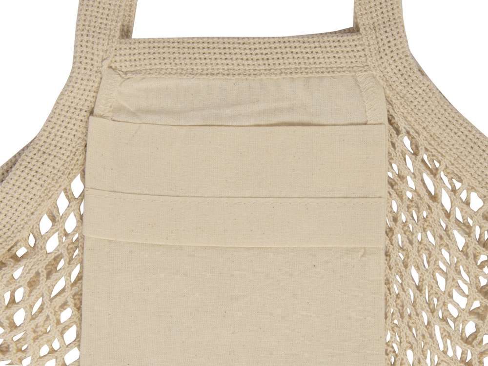 Складывающаяся сумка-авоська из хлопковой сетки легко помещается внутрь своего кармана и занимает минимум места. Поэтому ее всегда удобно держать под рукой. Во время шопинга карман пригодится для надежного хранения мелочей.