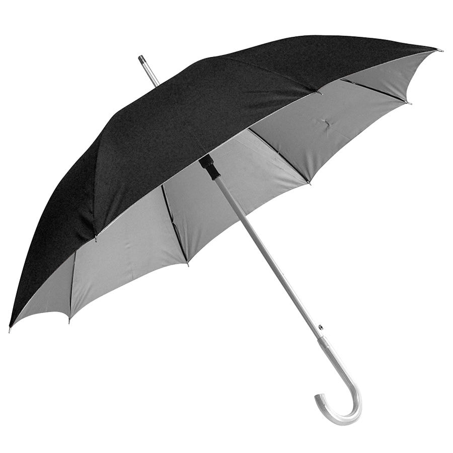 Зонт-трость SILVER, пластиковая ручка, полуавтомат, черный, серебристый
