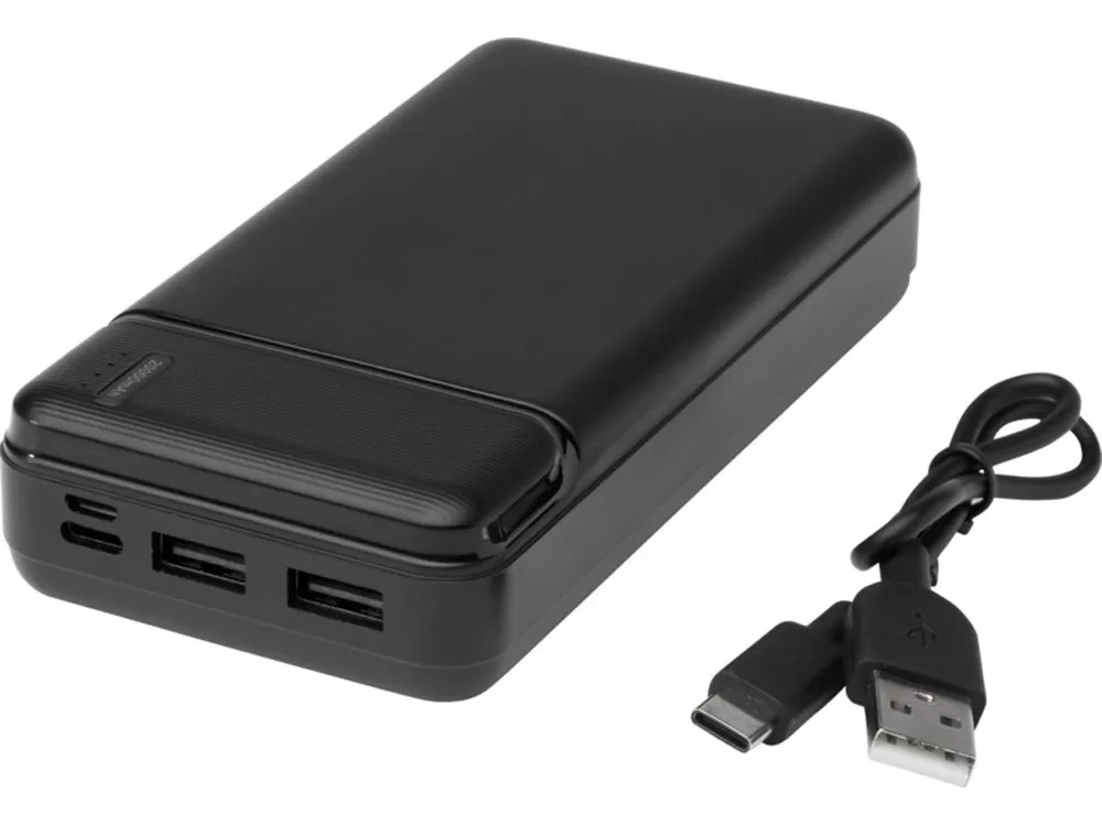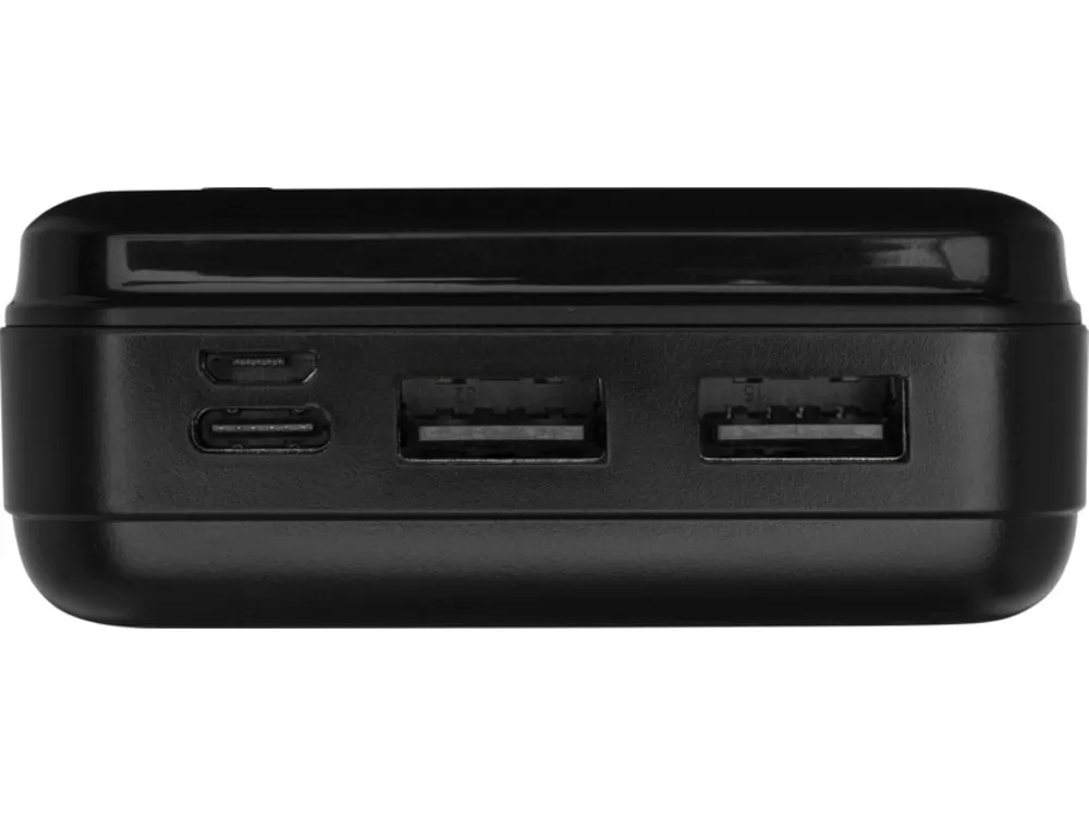 Портативное зарядное устройство изготовлено из переработанного пластика ABS. Портативное зарядное устройство работает от литий-полимерного аккумулятора класса А емкостью 20 000 мАч с длительным сроком службы для быстрой зарядки. Индикаторы питания показывают уровень оставшейся энергии, поэтому вы всегда будете знать, когда устройство необходимо зарядить. Вход Тип-C 5 В/2 А, вход Micro USB 5 В/2 A, двойной выход USB-A 5 В/2 А, общая мощность 10 Вт. Поставляется с зарядным кабелем USB-A - Type-C 2 А из термополиэтилена длиной 30 см, инструкцией по эксплуатации и подарочной коробкой из крафт-бумаги.