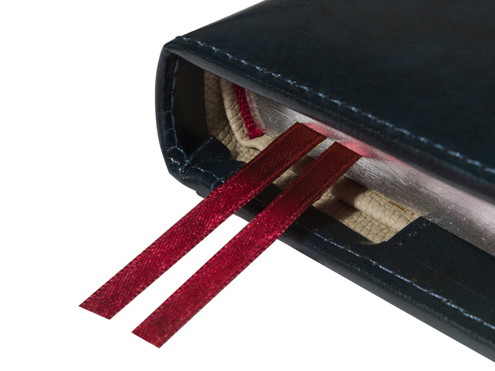 • серебряный срез, контрастирующий с цветом обложки;