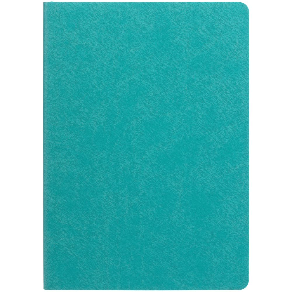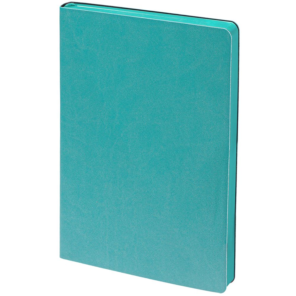Ежедневник с гибкой обложкой, выполнен из материала Latte, бирюзовый, дополнен ляссе в цвет обложки.