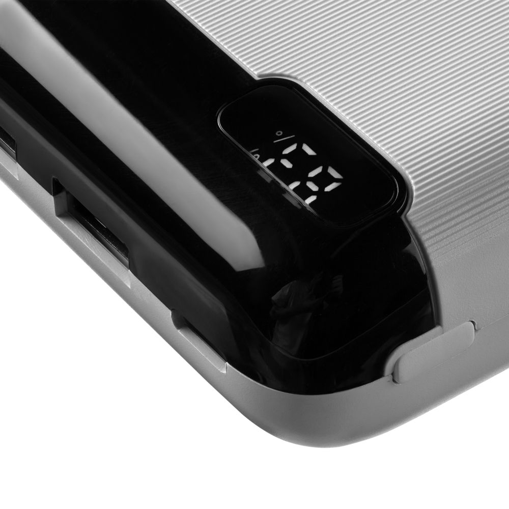 Аккумулятор со входными разъемами Type-C и Micro USB, а также удобным индикатором заряда в процентах.
