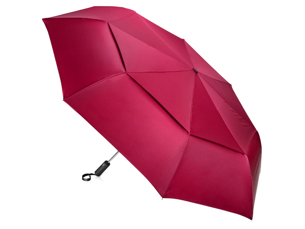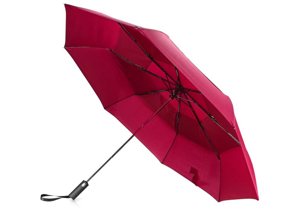 Купол этого складного зонта-автомата состоит из двух полотен и имеет большой диаметр 127 см. Прочный каркас и спицы из стекловолокна устоят при порывах ветра. Благодаря этому зонт служит надежным укрытием в самый сильный дождь. Закрывается в 3 сложения. Ручка обработана мягким покрытием soft-touch. Широкий хлястик для удобства персонализации.