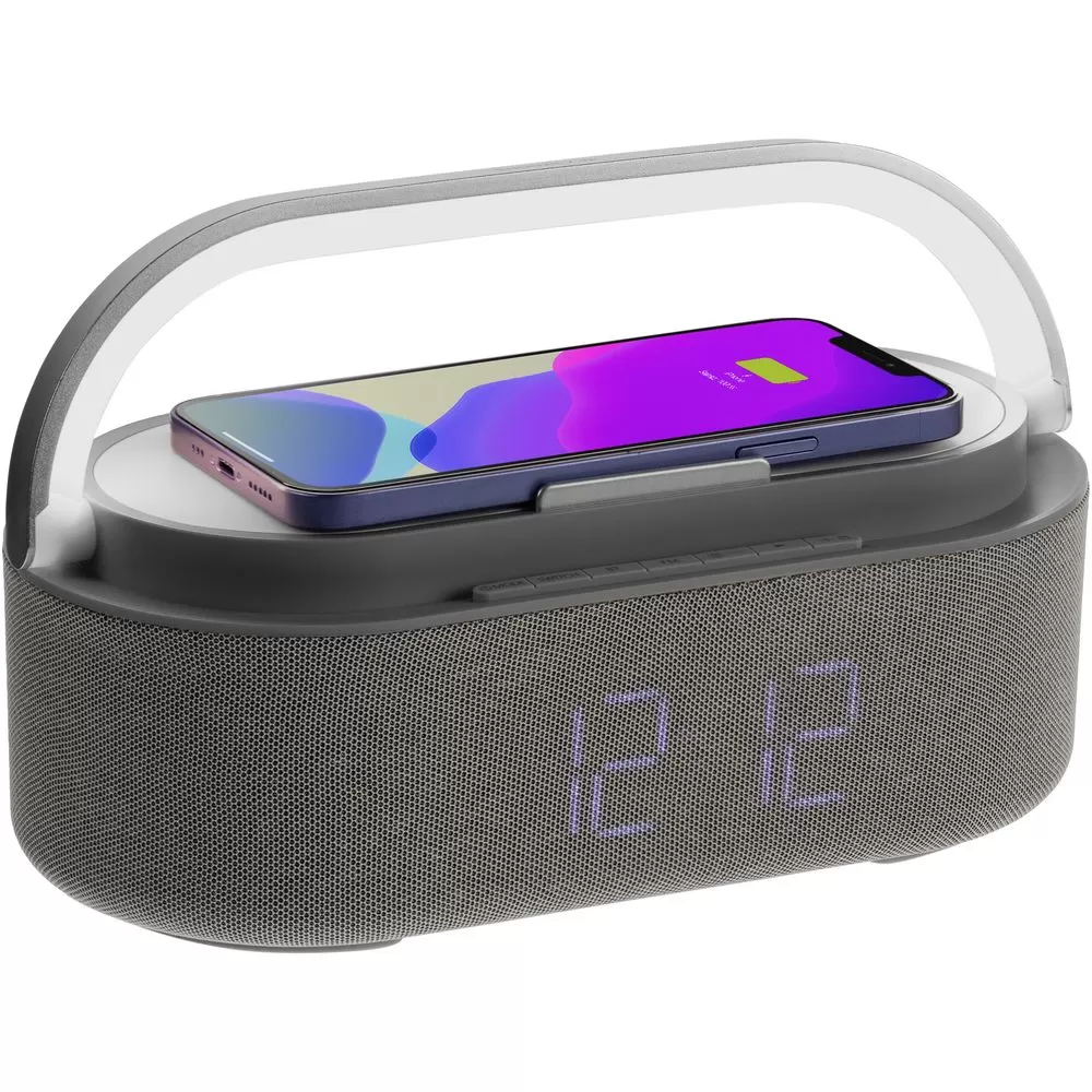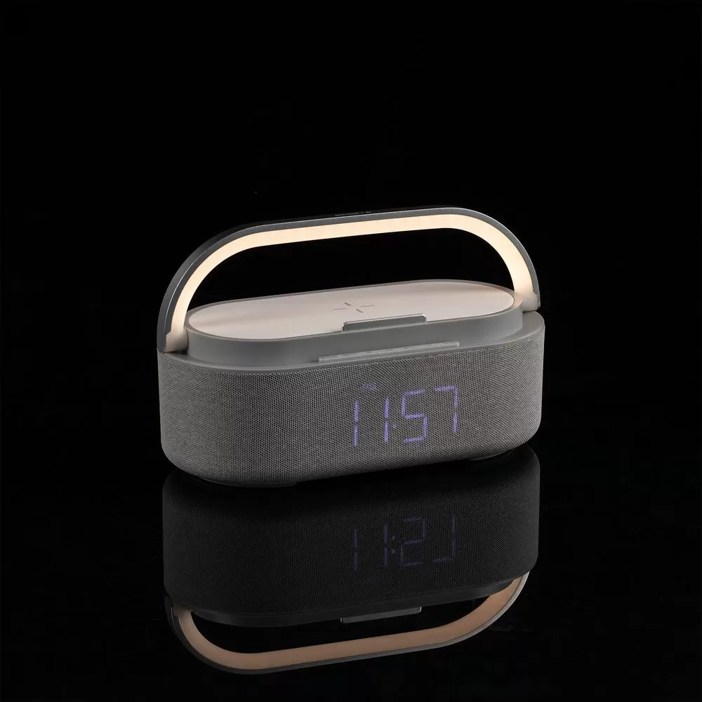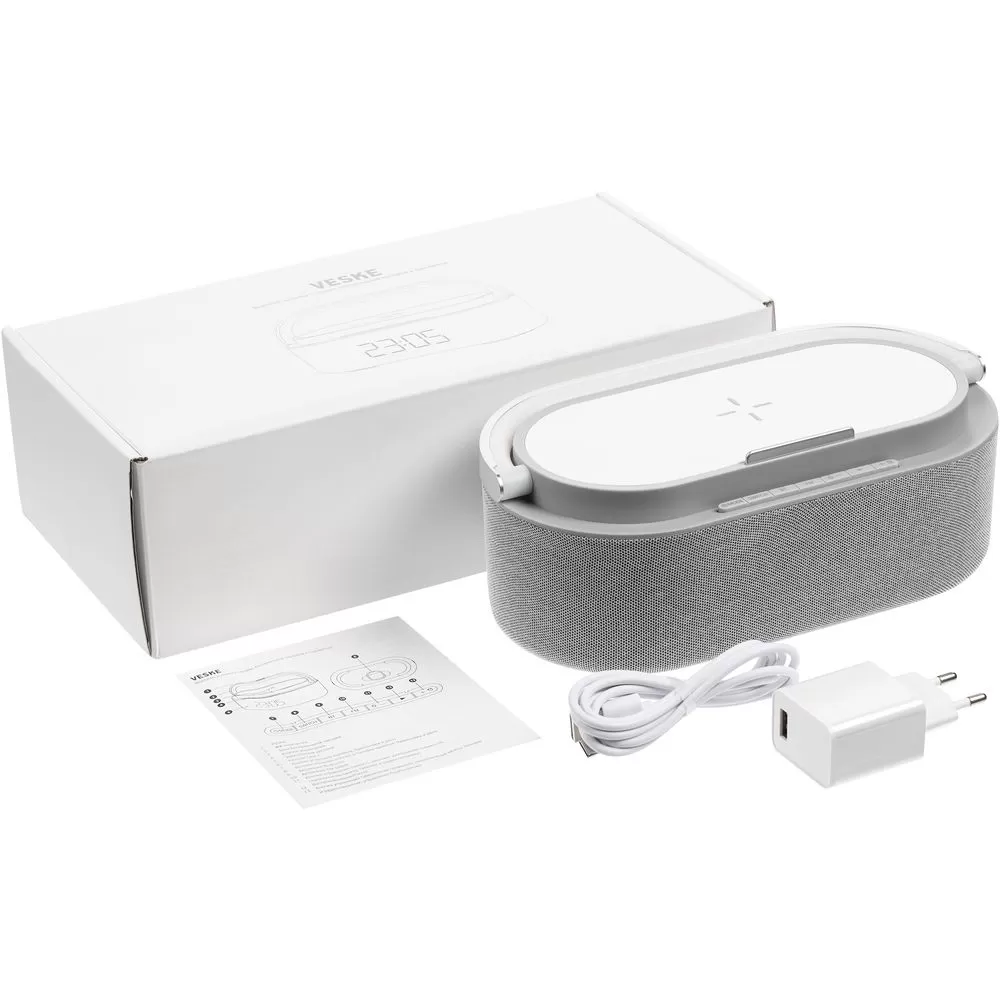 Колонка с часами и беспроводной зарядкой Veske, серая
