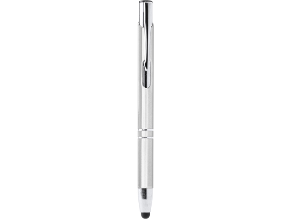 Шариковая ручка с алюминиевым корпусом и кнопкой с анодированным покрытием. Сенсорный стилус. Синие чернила.
