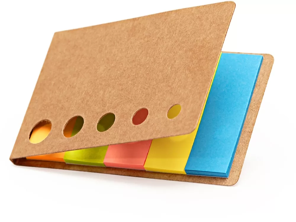 Оригинальный и практичный блокнот из переработанного картона со 100 полосками-липучками разных цветов.