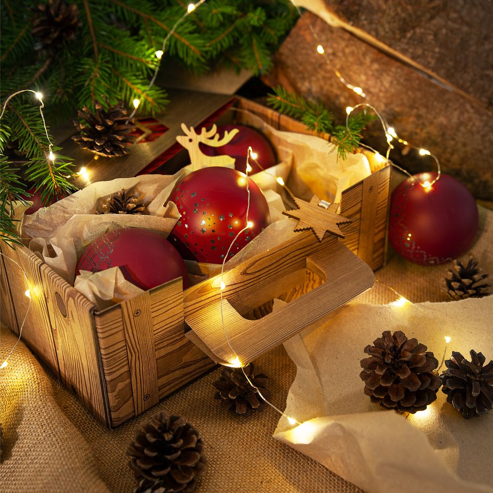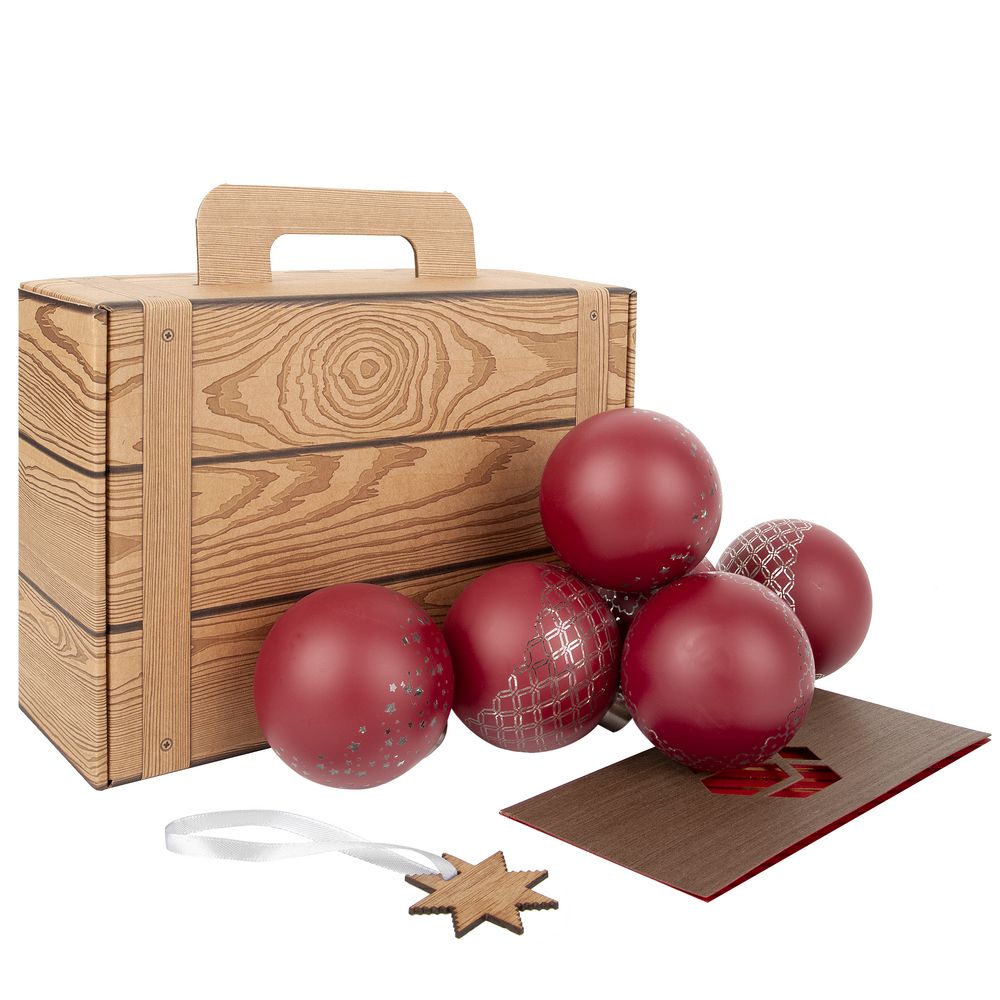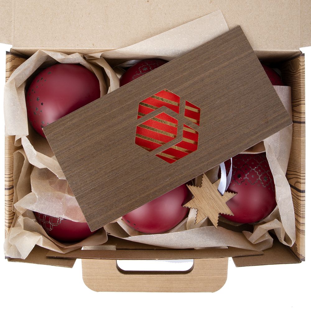 Элегантный новогодний набор с легким ностальгическим флером: елочные шары в едином стиле с праздничной гравировкой и символичные мини-презенты — важные составляющие любого праздничного декора для создания волшебного настроения.