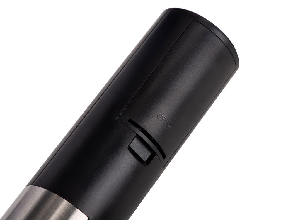Кнопки спуска и поднятия штопора визуально выглядят как одна большая кнопка, при нажатии на нижнюю часть которой спираль вкручивается в пробку по часовой стрелке, а при нажатии на верхнюю — освобождает пробку, вращаясь в противоположном направлении. От пользователя требуется лишь правильно расположить штопор на пробке и нажать на кнопку.