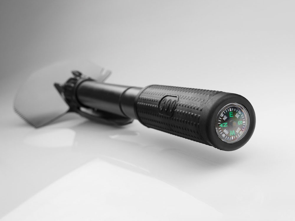 Металлическая складная лопата с компасом и резиновой рукояткой, практичная и компактная. Поставляется в сумке 600D.В сложенном виде: 160 x 100 мм | В развернутом виде: 420 x 100 мм.