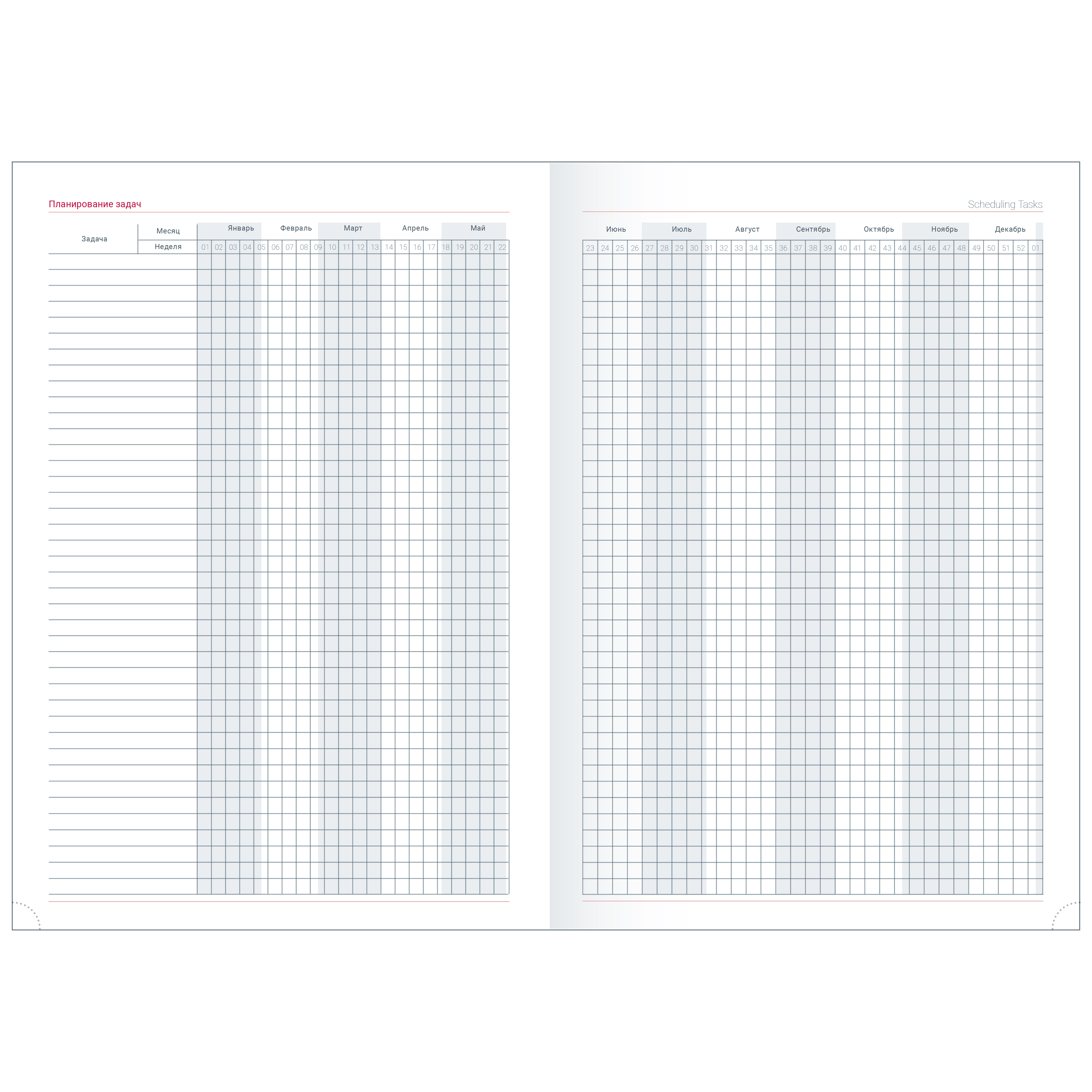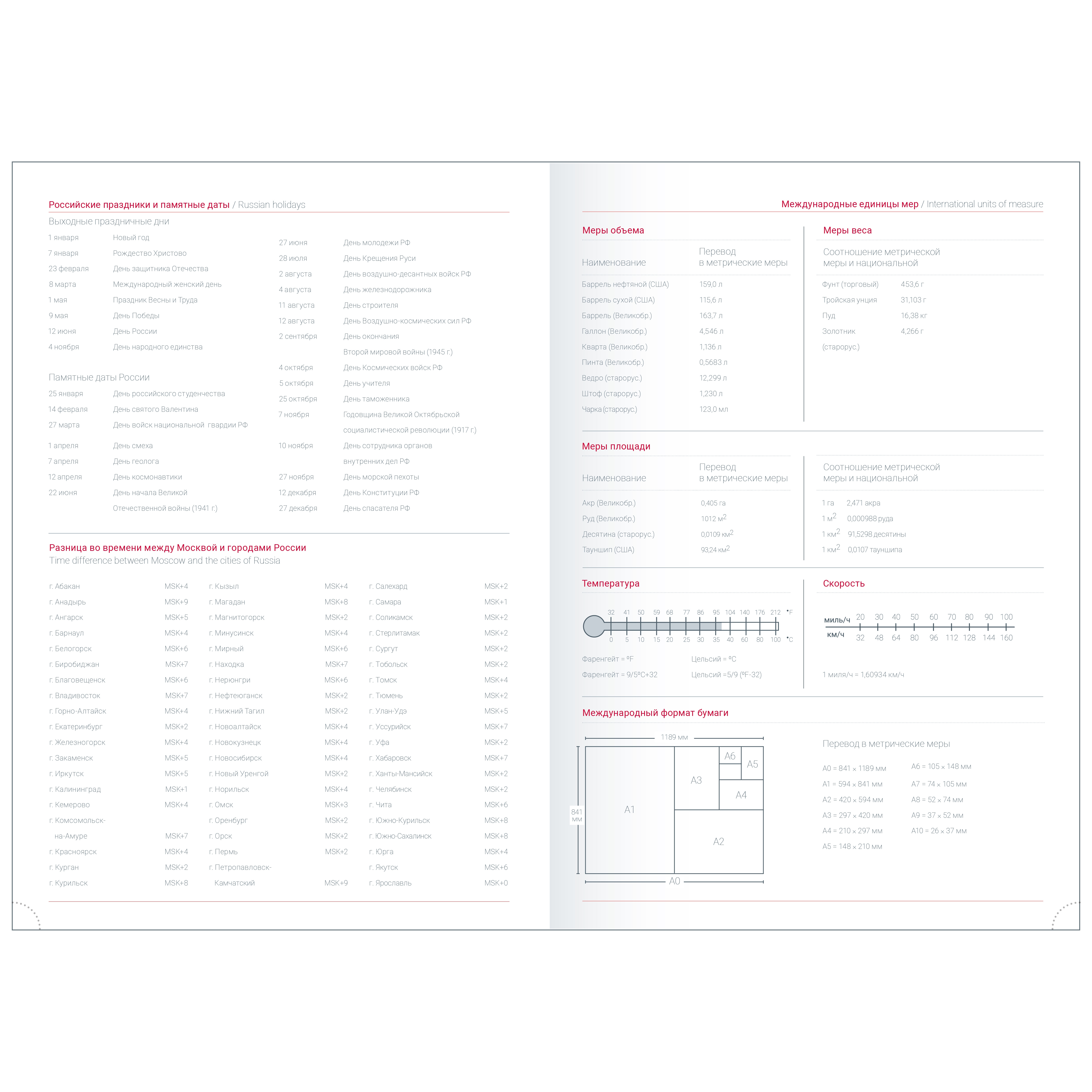 В еженедельнике также имеется одна удобная атласная закладка, которая поможет быстро найти нужный разворот.