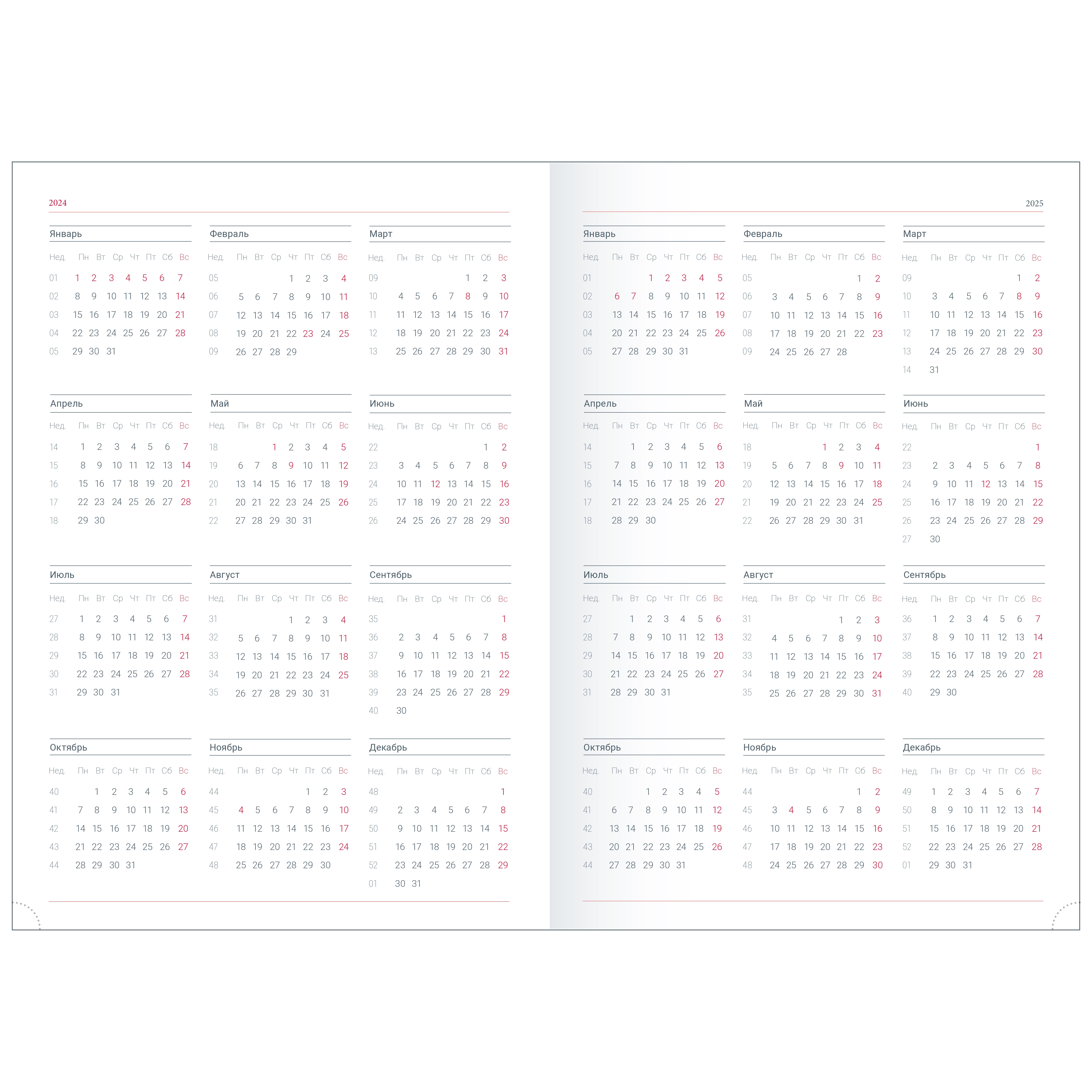 Настольный датированный на 2024 год еженедельник формата А4 (210х300 мм) будет не только незаменимым помощником в ведении дел, но и станет стильным аксессуаром, отражающим индивидуальность владельца.