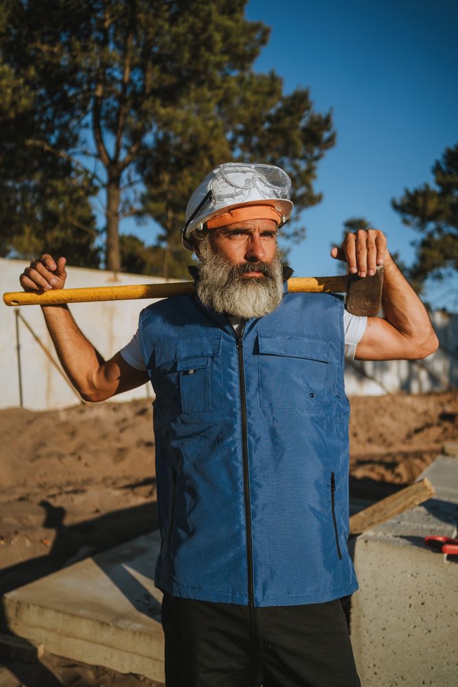 Мужской утепленный жилет с воротником-стойкой и удлиненной спинкой. Выполнен из ткани оксфорд с водоотталкивающим покрытием.
