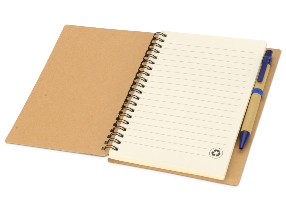 Блокнот Priestly с ручкой. Блокнот формата с 60 листами линованной бумаги вторичной переработки и ручкой под цвет блокнота. На обложку блокнота и ручку можно нанести яркий логотип.