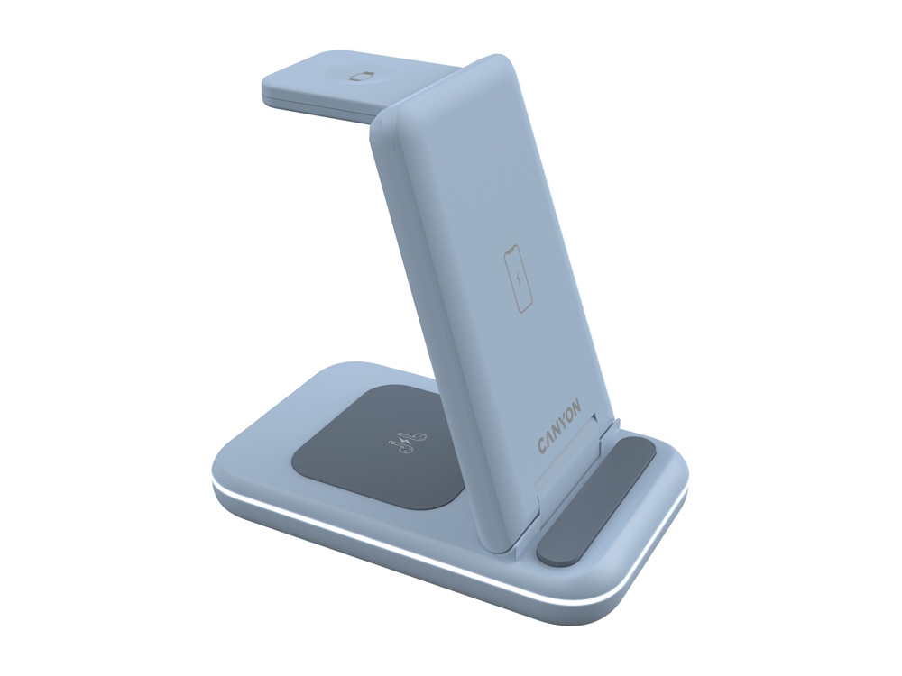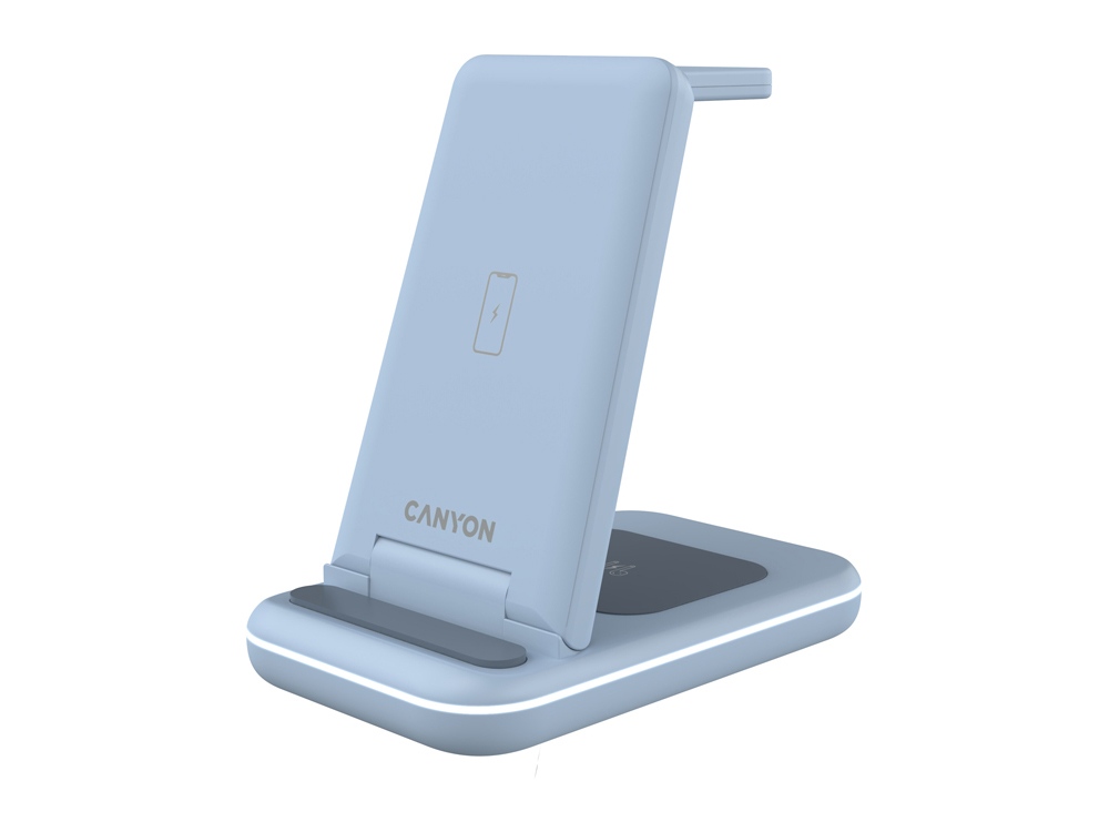 Беспроводное зарядное устройство 3-в-1 CANYON WS-304 (CNS-WCS304B), 15W, голубой