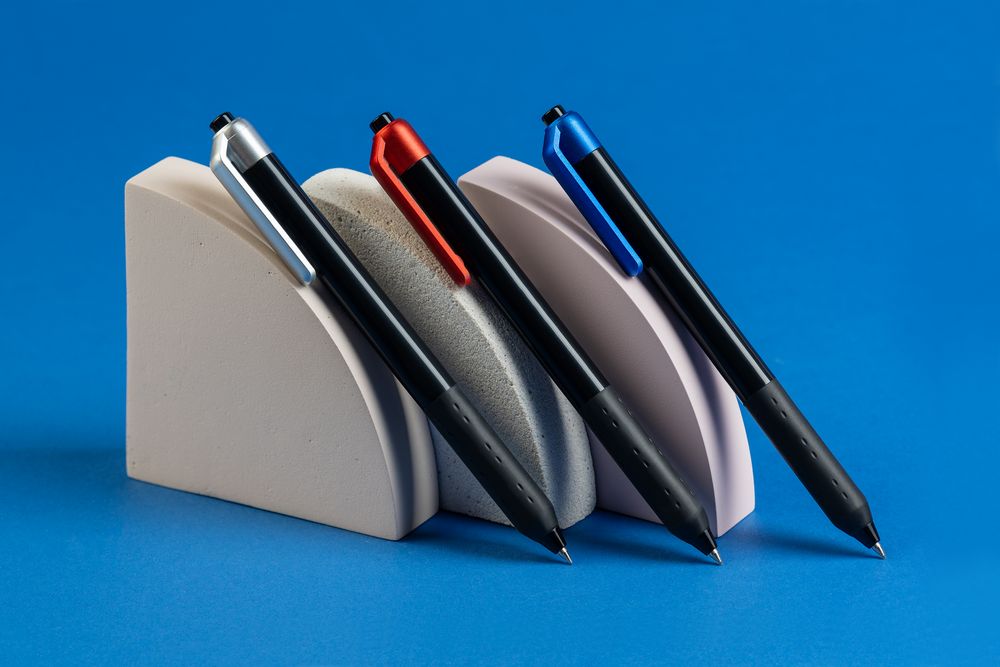 Пластиковая ручка с резиновым упором и контрастными деталями с металлическим отливом. Чернила пониженной вязкости обеспечивают мягкое и плавное письмо.