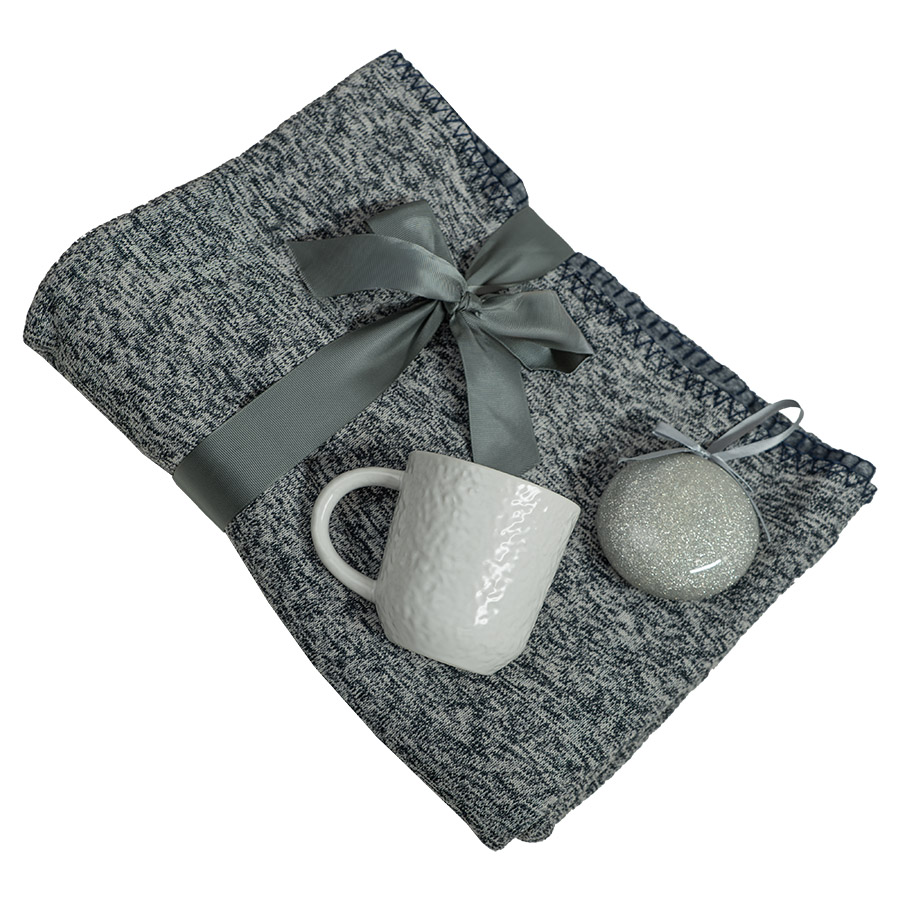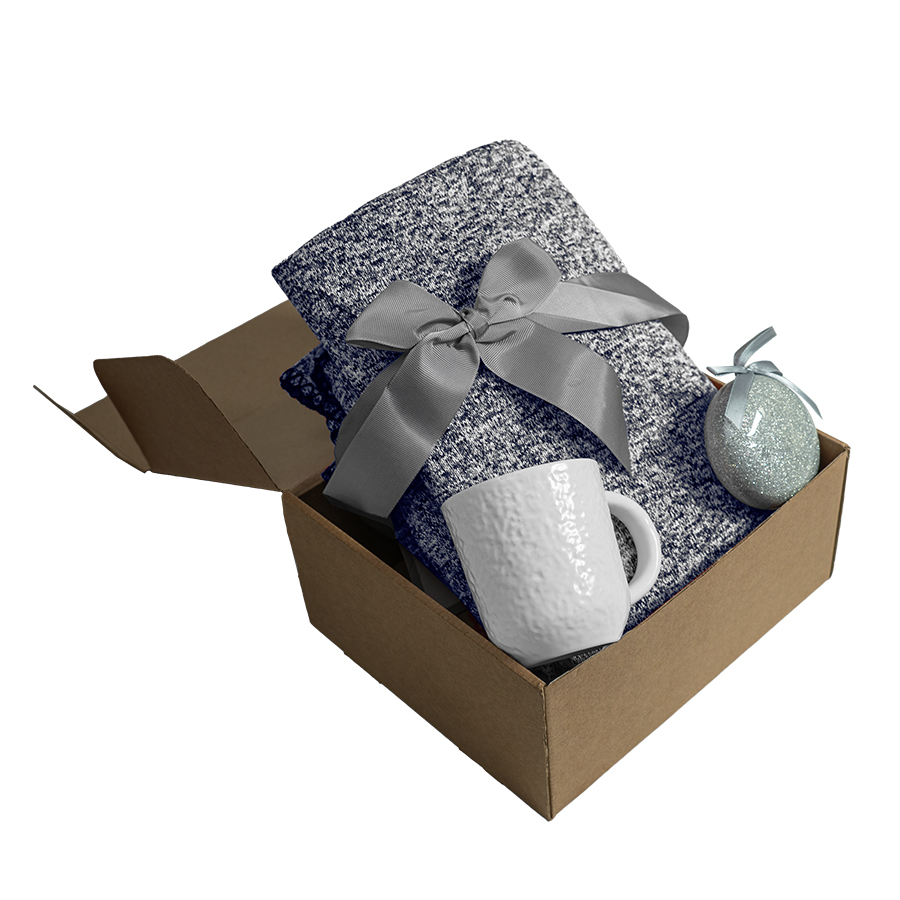 Подарочный набор HOLIDAY: плед, кружка, шар новогодний, коробка; синий