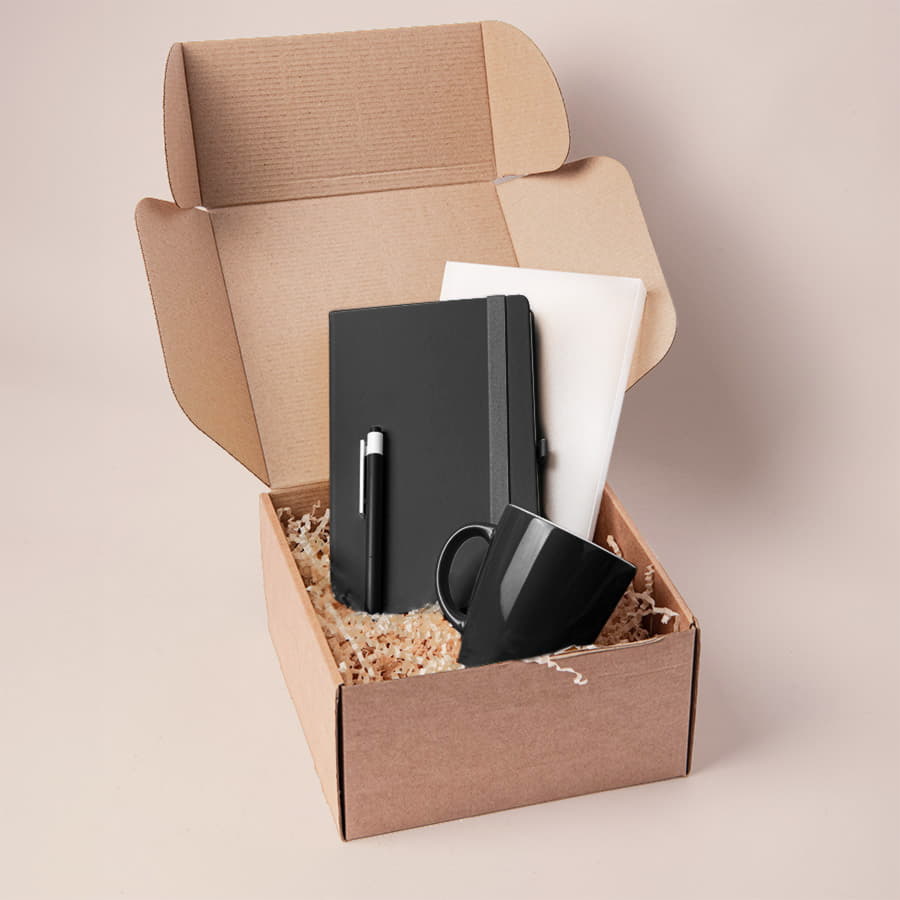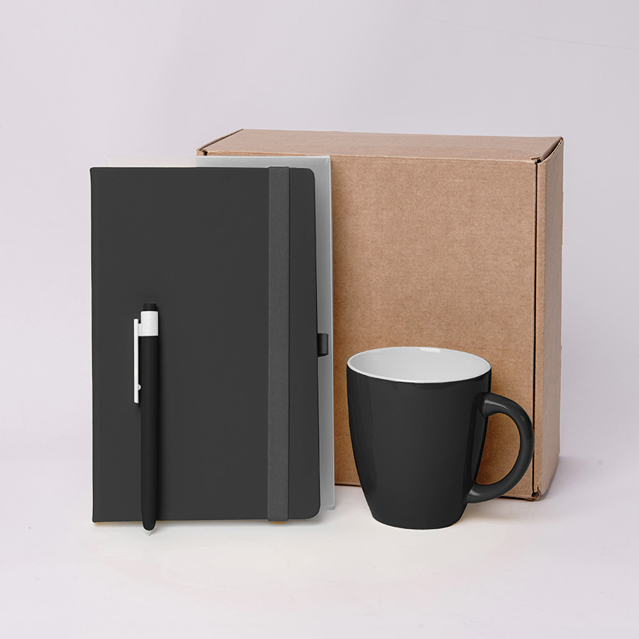 Подарочный набор JOY: блокнот, ручка, кружка, коробка, стружка; черный