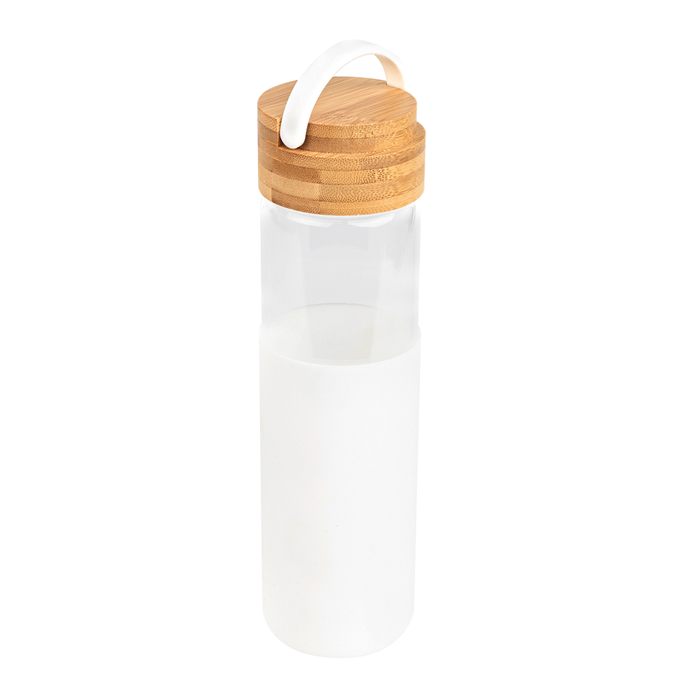 Бутылка стеклянная с силиконовой манжетой и бамбуковой крышкой Glass , белый - 1 шт. (Артикул: 14032.01)