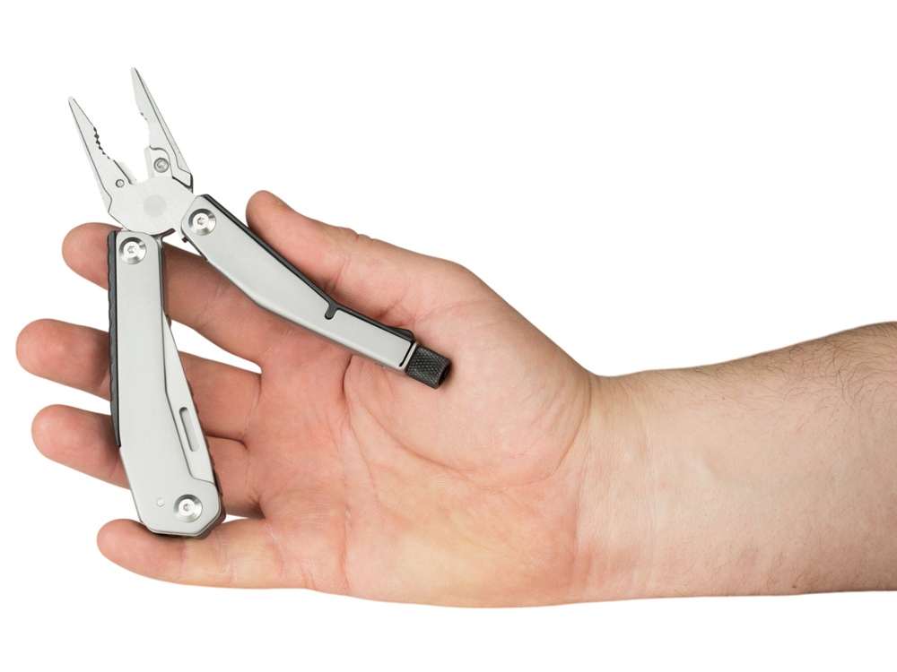 Складной нож Scopus от roq выполнен в ассиметричном необычном дизайне, в его составе — среднего размера нож, пассатижи, плоская и крестовая отвертки (биты), шестигранный ключ 5 мм.
