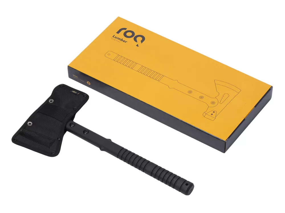 Топор 4-в-1 Lumber бренда roq выполнен из нержавеющей стали 420 марки. Товар поставляется в нейлоновом чехле. В чехле есть специальный кармашек с огнивом. Чтобы высечь искры для разжигания костра, возьмите огниво за рукоять в одну руку и проведите лезвием по стержню огнива под углом в 90 градусов в направлении от себя. В целях безопасности не высекайте искры в помещении или около легко воспламеняемых материалов. Поставляется с чехлом в картонной коробке.