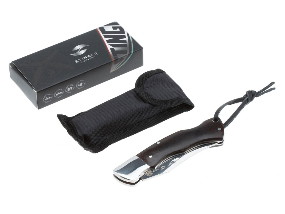 Нож складной Stinger, 92 мм, (серебристый), материал рукояти: сталь/дерево (серебристо-коричневый)