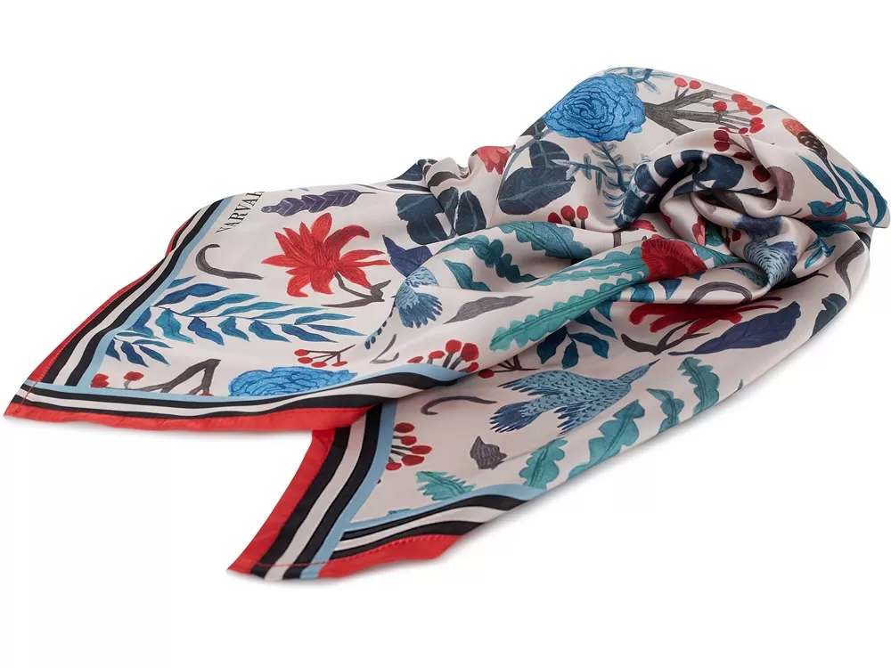 Платок из искусственного шелка саржевого плетения (твил) размером 70*70 см., с авторским принтом Фазаны.