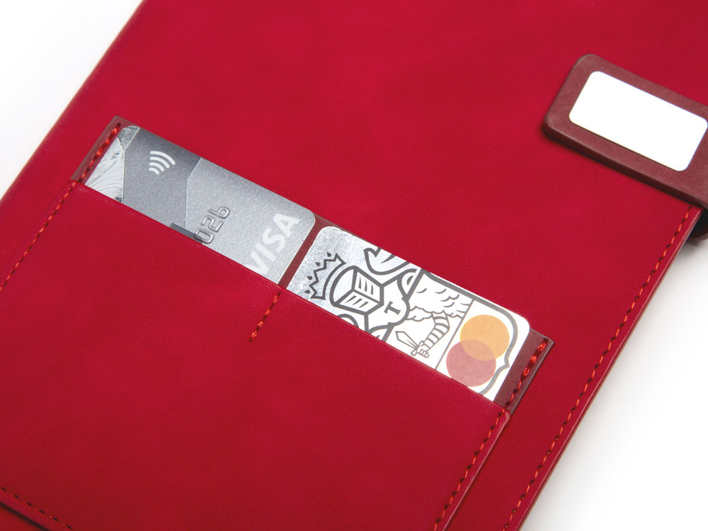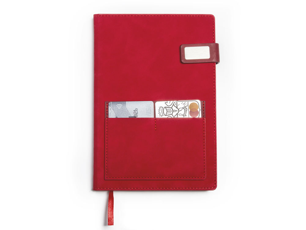 Бизнес блокнот А5 Freya с клапаном и карманом для визиток, твердая обложка, 128 листов, красный и бор