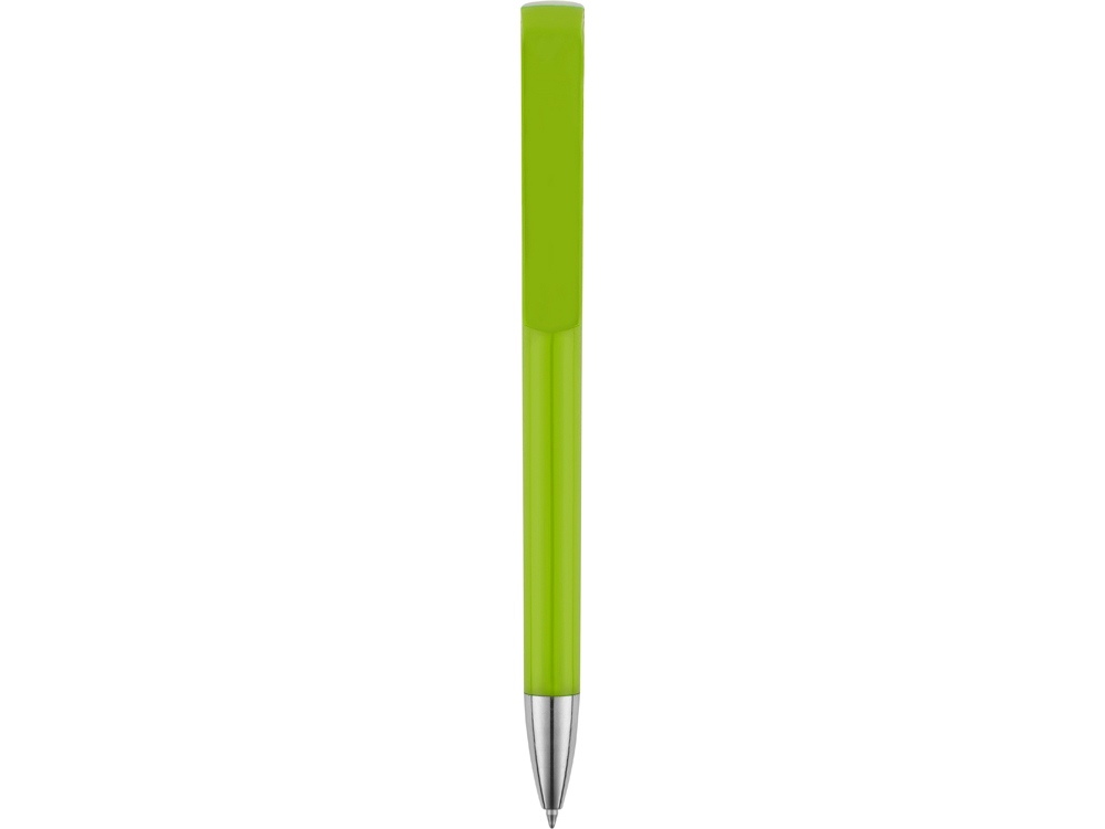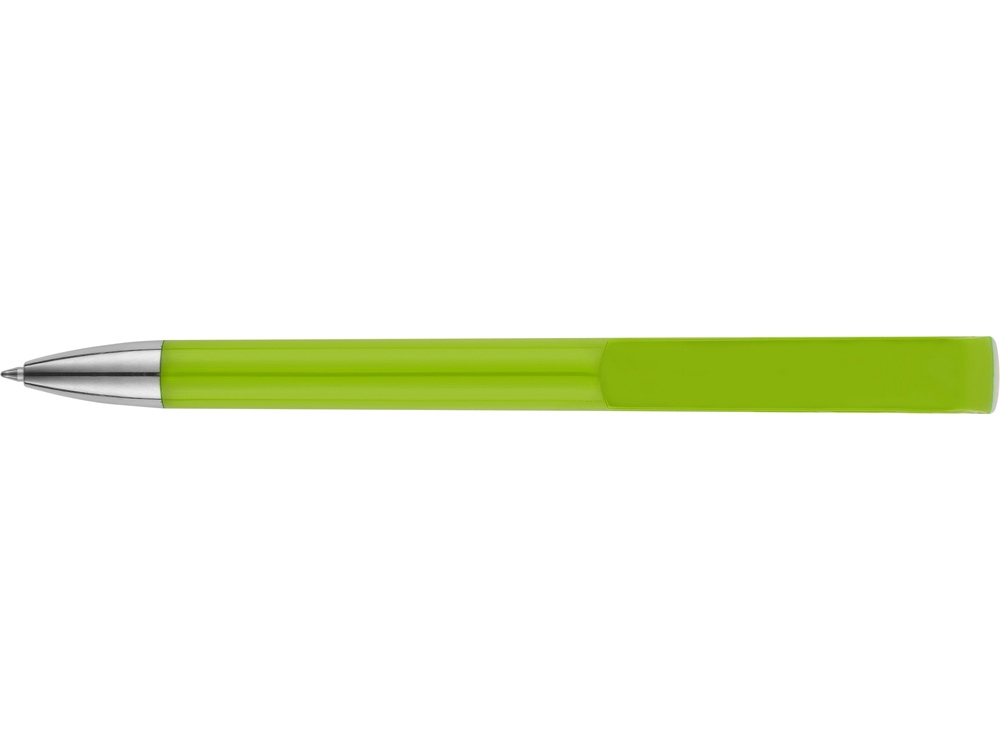 Пластиковая ручка с цветным корпусом и серебристым носиком привлечет внимание своим необычным дизайном: при нажатии на кнопку двигается только часть клипа, а вторая – остается на месте. Из шести расцветок можно выбрать ту, что наилучшим образом подойдет к вашим фирменным цветам.