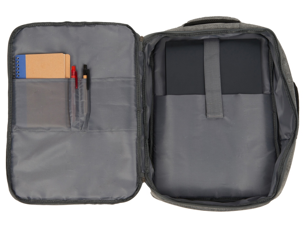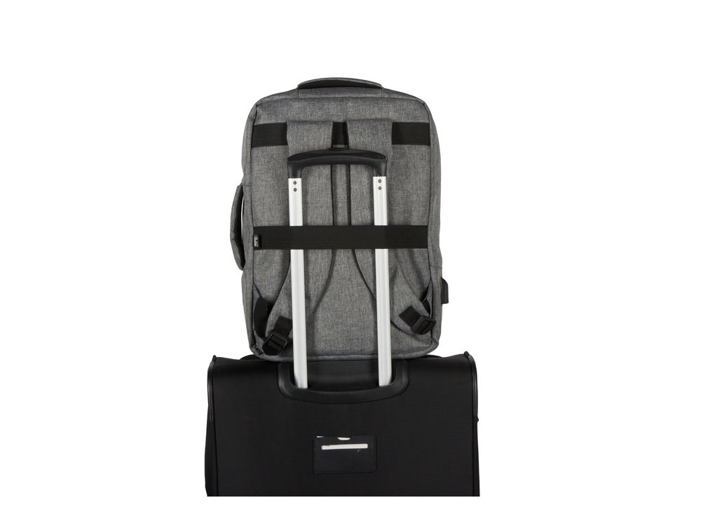 Легкий, удобный и вместительный в деловых поездках. Рюкзак трансформируется в деловую сумку благодаря второй ручке. Основное отделение с органайзером имеет глубину 11 см, что позволяет хранить в нем одежду и все необходимое для командировок. Для большего удобства рюкзак оснащен USB выходом и ремнем для крепления к чемодану. Лямки регулируются по длине.