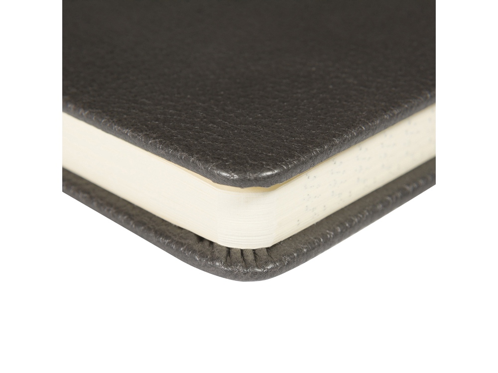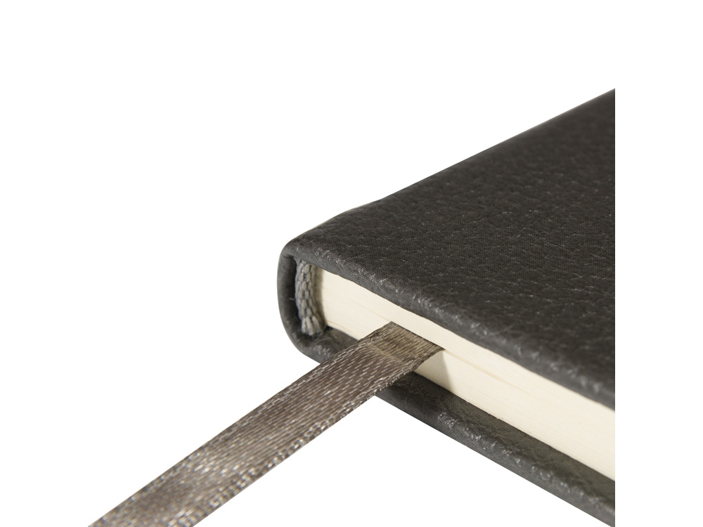 Твердая обложка с приятной фактурой, углами закругленной формы, книжный переплет и ляссе в цвет обложки наделяют блокнот практичностью.