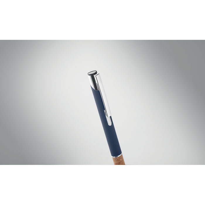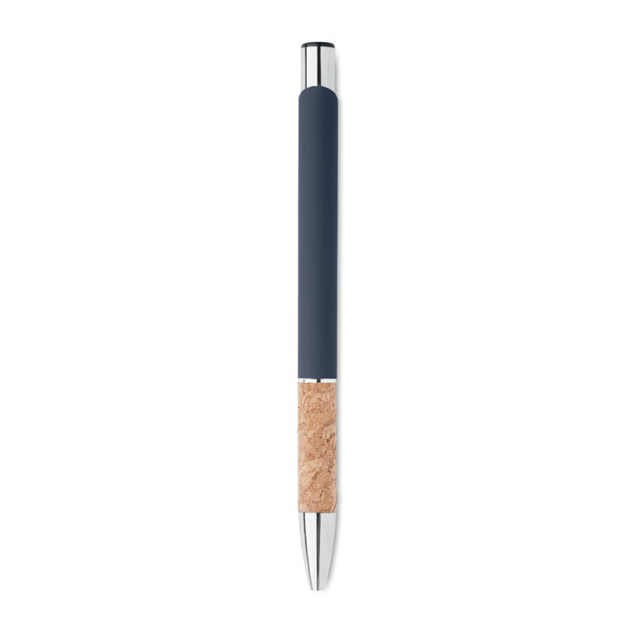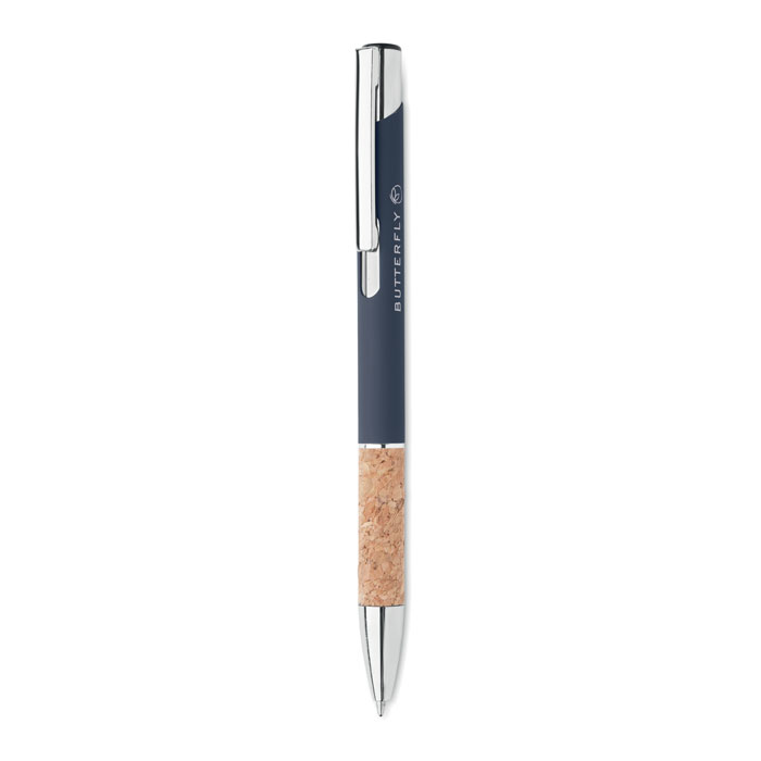 Кнопочная ручка из алюминия с пробковой ручкой. Синие чернила.