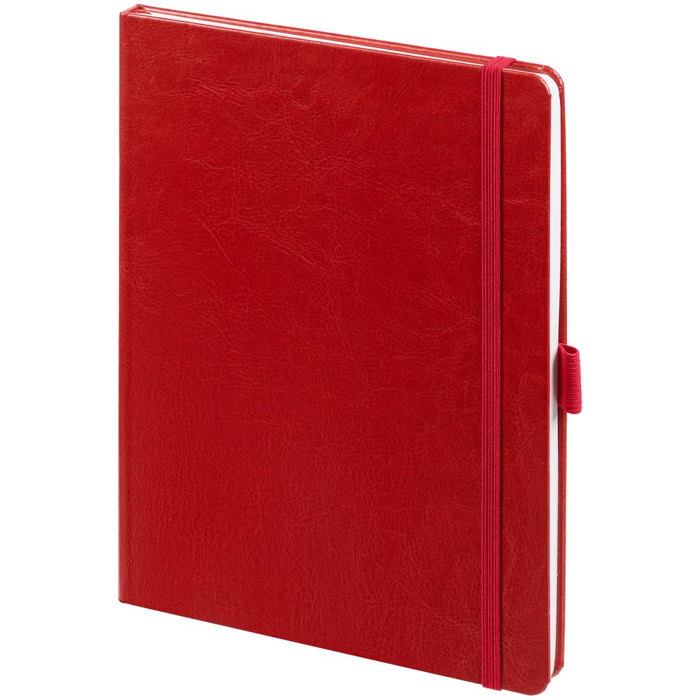 Еженедельник в твердой обложке выполнен из материала Nebraska, красный РР, дополнен резинкой, петлей для ручки и ляссе красного цвета.