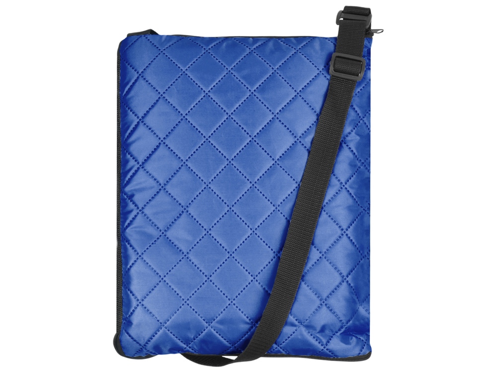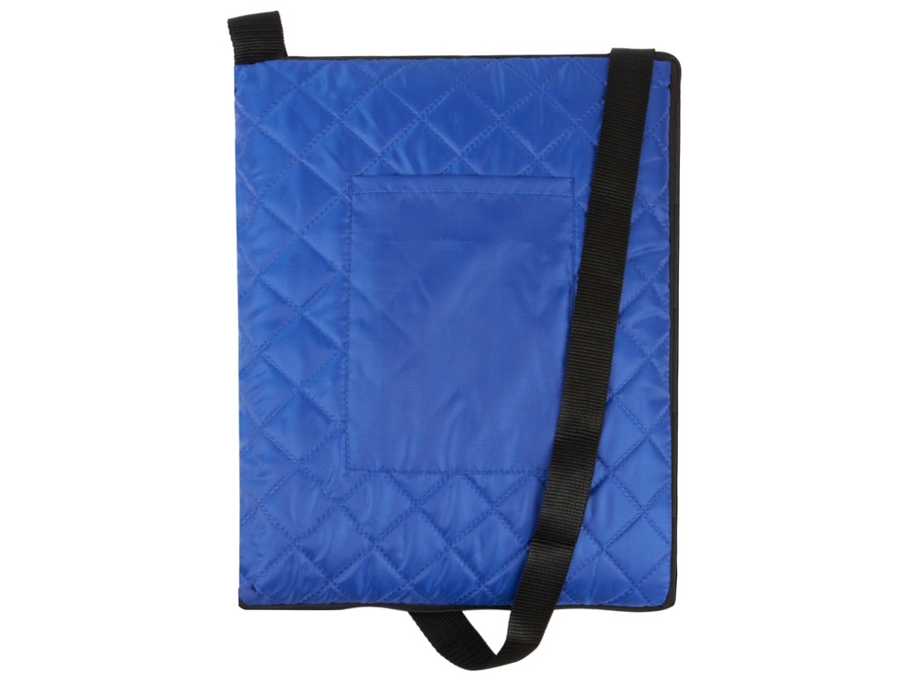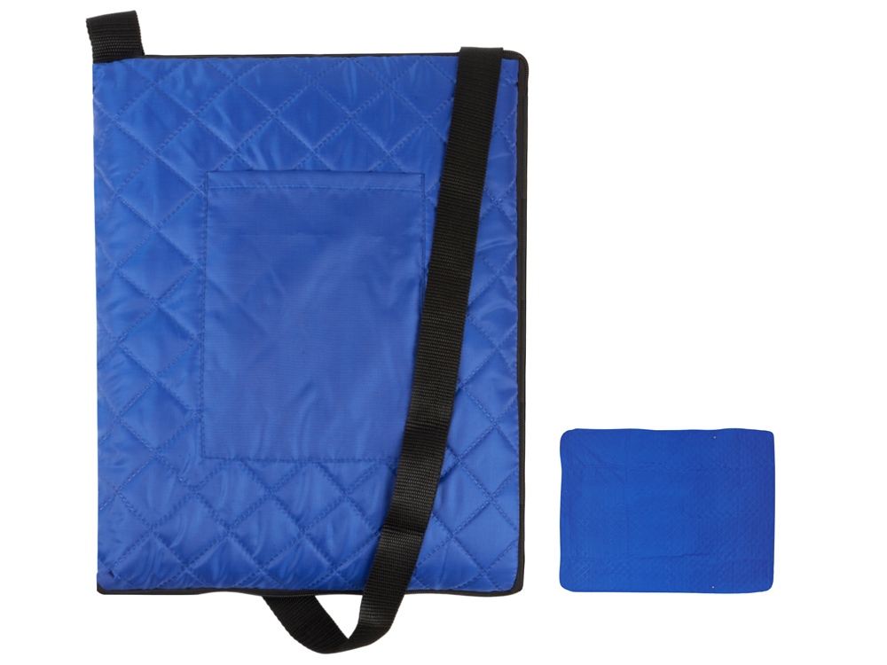 Двухсторонний плед с водоотталкивающим покрытием с одной стороны и мягким флисом с другой. Складывается в сумку на плечо и фиксируется с помощью молнии. В собранном виде имеет ремень для переноски и наружный карман для мелочей.
