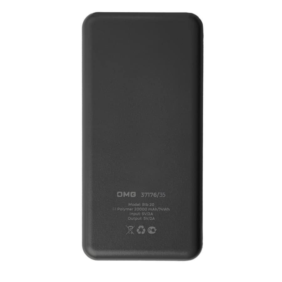 Универсальный аккумулятор Rib 20 (20000 мАч), черный, 14,1х6.9х2,8 см