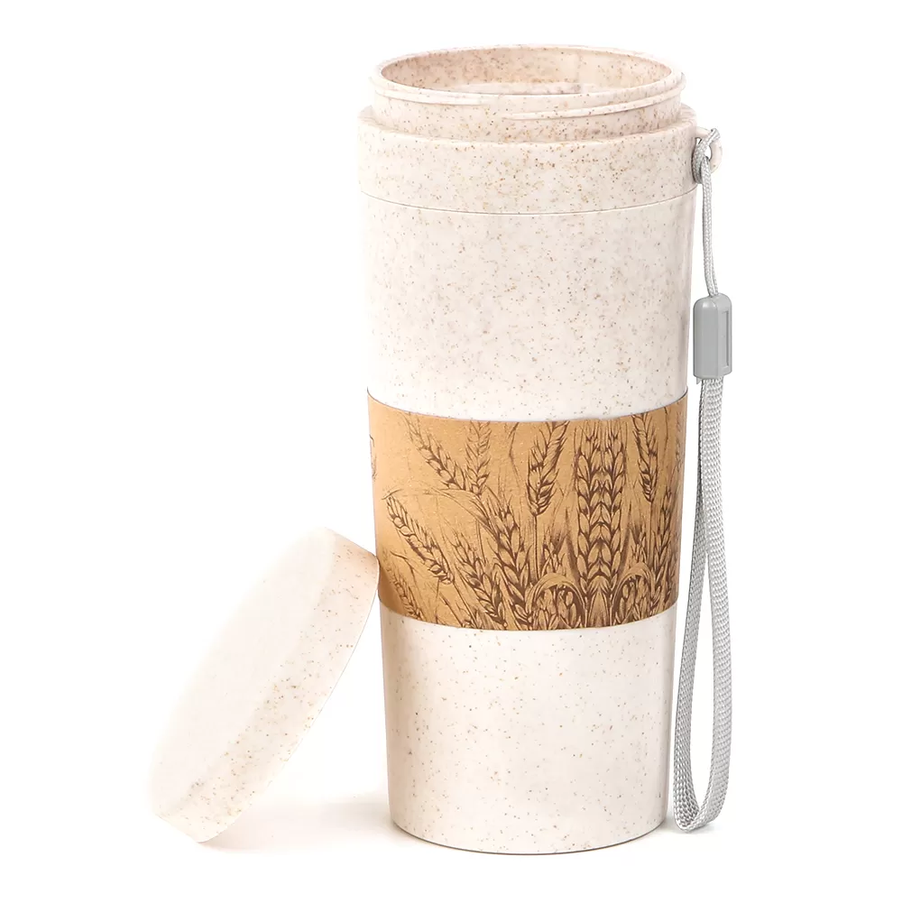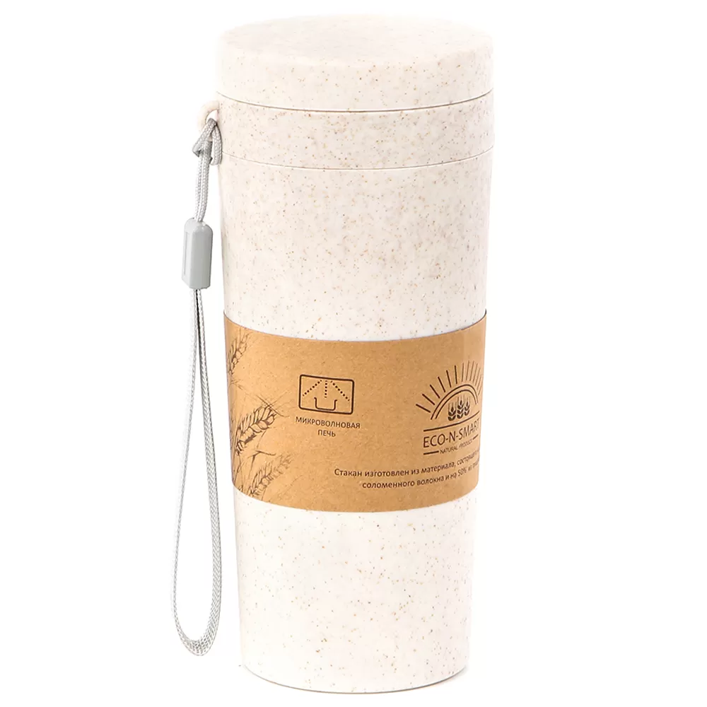 Удобный, компактный термостакан для горячих напитков. Крышка прилегает плотно и удерживает от случайных протечек. Пшеничное волокно — отличный экологичный материал, позволяет подогревать в микроволновой печи. Однако не стоит лить крутой кипяток или кипятить в нём воду, поскольку при температуре выше 80°C термостакан может терять некоторые свойства. Петелька позволит удержать стакан, если тот выскользнет с рук. Двойная стенка удерживает тепло и не даёт обжечься. Горячо во рту, а не в руках!