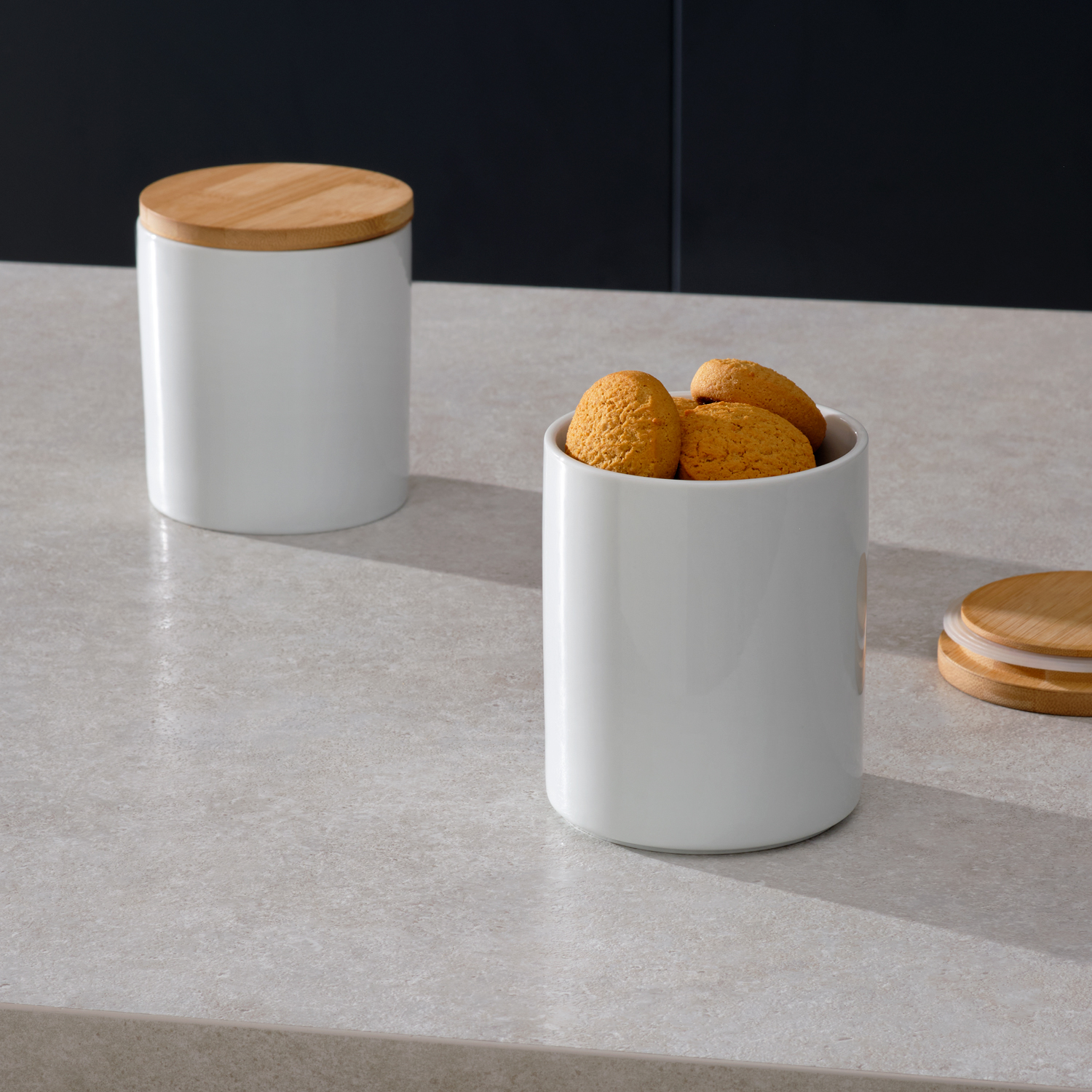 Контейнер прекрасно подойдет для хранения различных сыпучих продуктов: чая, кофе, сахара, круп и многого другого. Емкость классической круглой формы не только поможет хранить разнообразные сыпучие продукты, но и стильно дополнит интерьер кухни.—