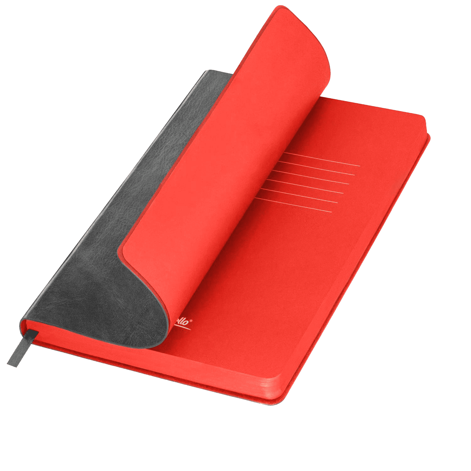 Эффектный недатированный ежедневник выполнен в гибкой обложке со скругленными уголками из искусственной кожи с эффектом «венецианской штукатурки». На ощупь поверхность гладкая, глянцевая, фактурно ощущается характерный для кожи мелкий рельеф. Цвет обложки – классический серый, глубокий, густой, однородный. Цвет матовых форзаца и нахзаца – красный, насыщенный, динамичный. Ярко контрастирует с обложкой. Срез матовый, выполнен в тон форзаца и нахзаца. Страницы со скругленными уголками теплого светло-кремового оттенка из гладкого шелковистого офсета. Одинарное атласное серое ляссе с легким глянцевым отливом. Ширина ляссе 6 мм.