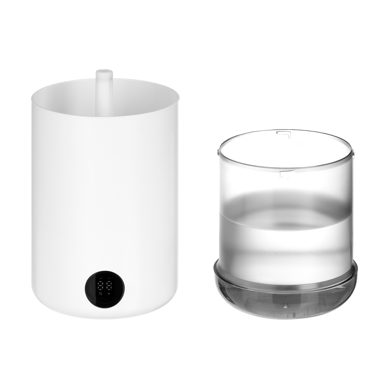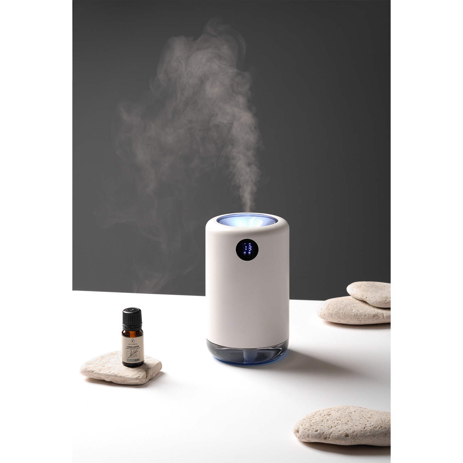 Портативный увлажнитель воздуха со встроенным аккумулятором 2000 mAh и функцией LED-подсветки белого цвета. Технология нано-распыления эффективно снижает сухость воздуха и электронное излучение, что устраняет статическое электричество. Специальное покрытие корпуса OIL PAINT обеспечивает лучшие визуальные и тактильные характеристики пластика. Есть цифровой индикатор заряда батареи. Объем резервуара воды – 500 мл.