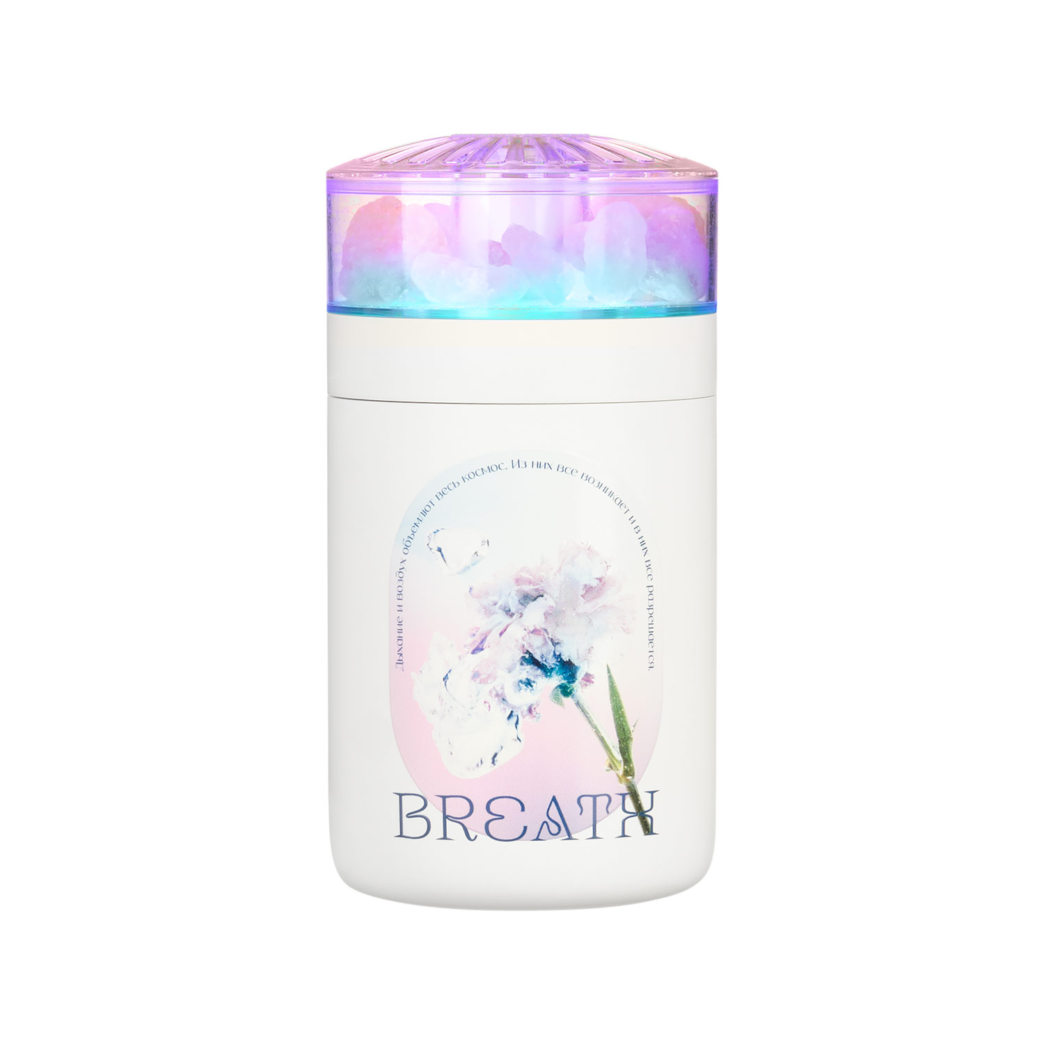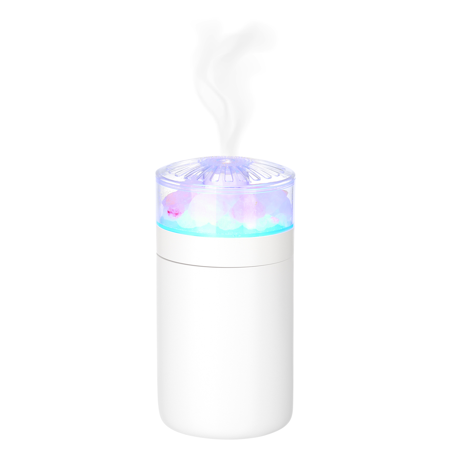 Мини-увлажнитель воздуха с соляными кристаллами и функцией радужной LED-подсветки Технология нано-распыления эффективно снижает сухость и статическое электричество в воздухе. Кристаллы гималайской соли при нагревании LED-подсветкой ионизируют и очищают воздух. Устройство можно использовать как аромадиффузор, добавив на поверхность кристаллов пару капель эфирного масла. Специальное покрытие корпуса OIL PAINT обеспечивает лучшие визуальные и тактильные характеристики пластика. Подходит для использования в помещении и в автомобиле. Объем резервуара воды – 250 мл.