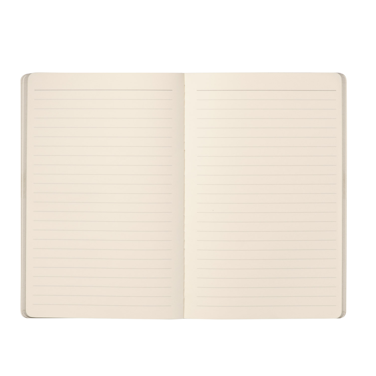 Тонкий блокнот удобен в использовании и характеризуется изящным дизайном. Мягкая обложка изделия, матовая поверхность soft touch приятна на ощупь: ее фактура шелковиста. Прошитый переплет блокнота исполнен нитью в цвет обложки. Светло-кремовые страницы разлинованы в линейку, а их уголки аккуратно скруглены. Цветной срез блока выполнен в цвет обложки.
