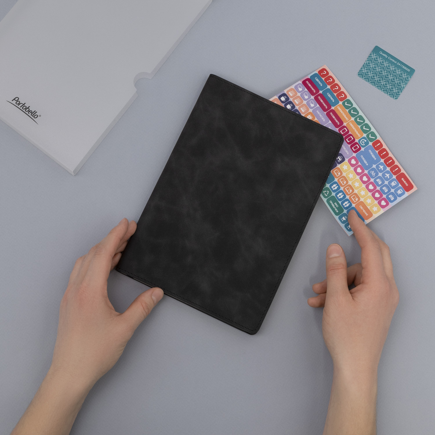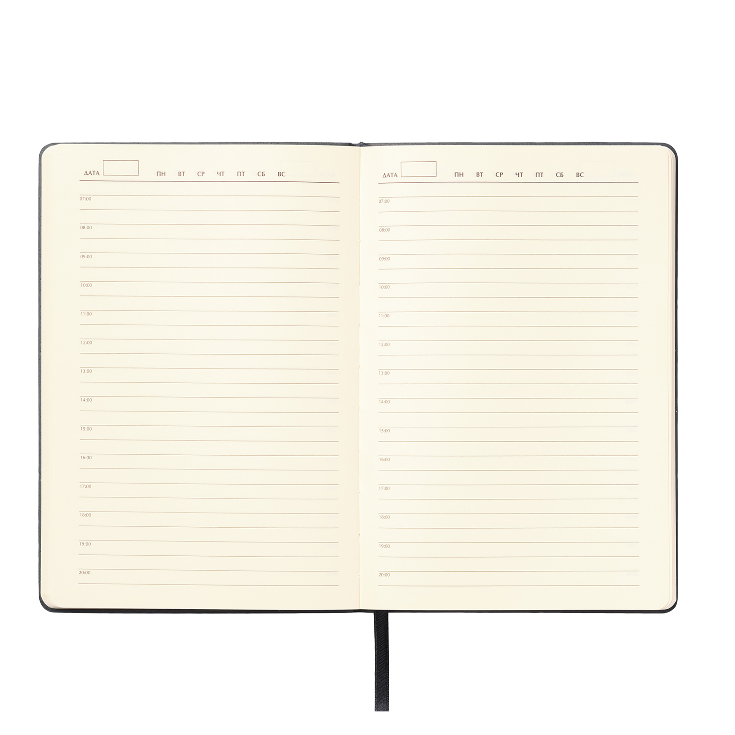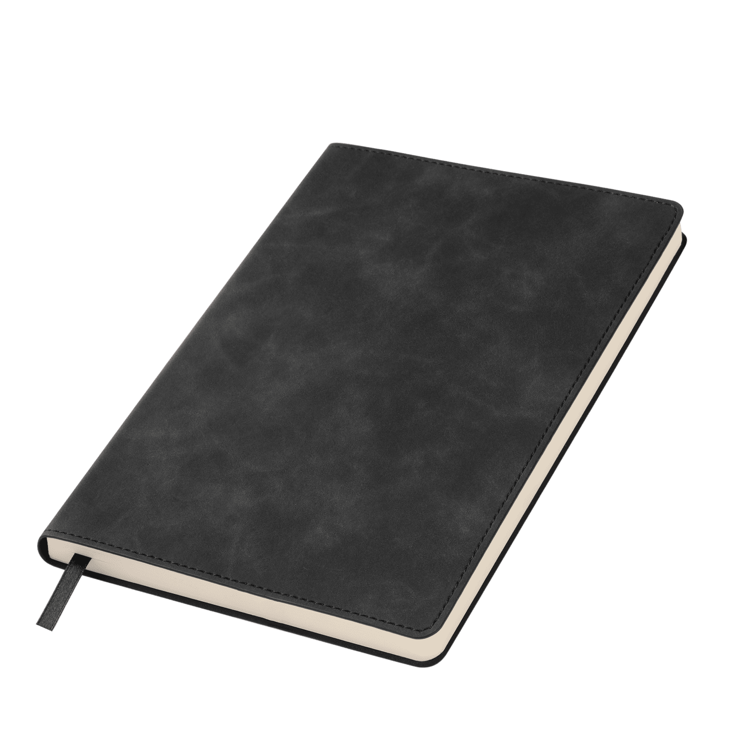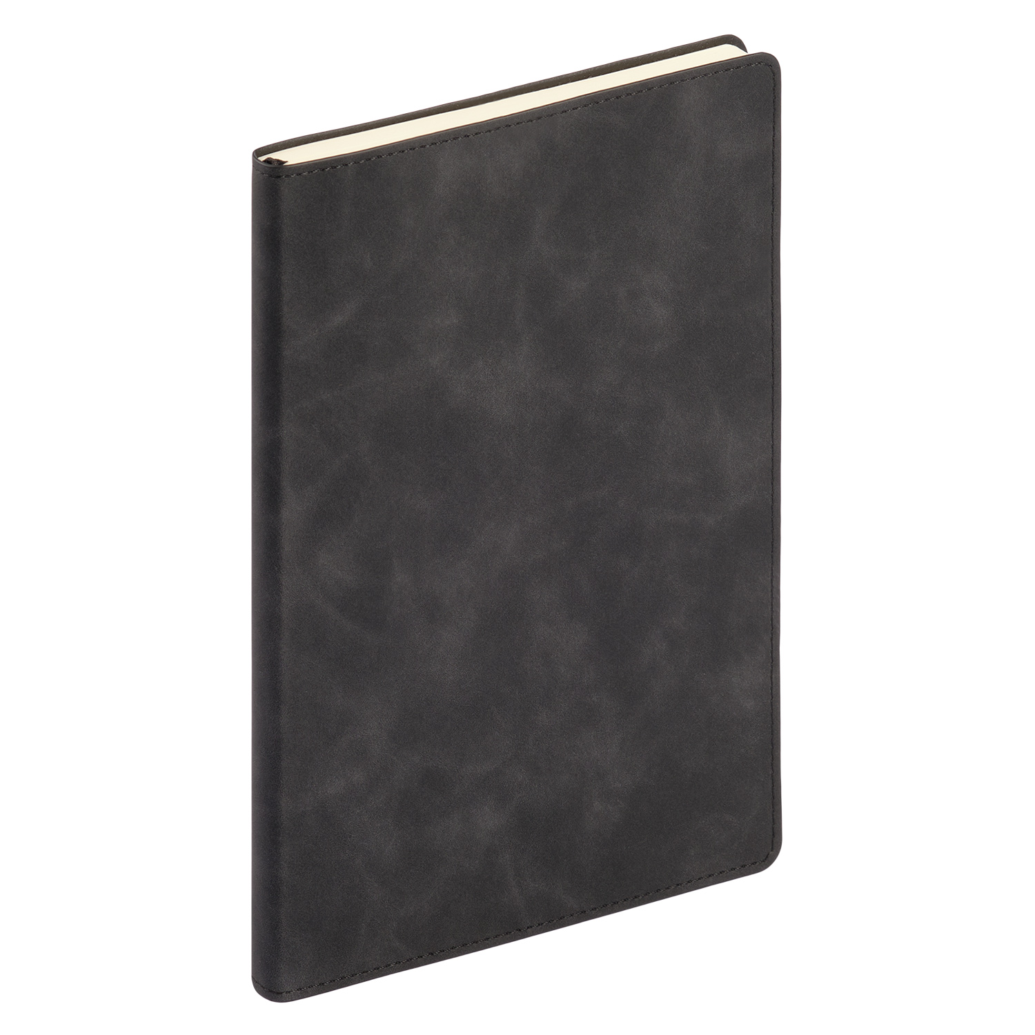 Недатированный ежедневник в гибкой обложке из качественной искусственной кожи со скругленными уголками. Обложка выполнена из мягкого шелковистого материала, по тактильности напоминающего замшу. Прошивка по периметру в тон материала обложки. Форзац,нахзац и срез кремового цвета. Страницы со скругленными уголками из гладкого шелковистого офсета, кремовые. Одинарное атласноеляссе 6 мм.
