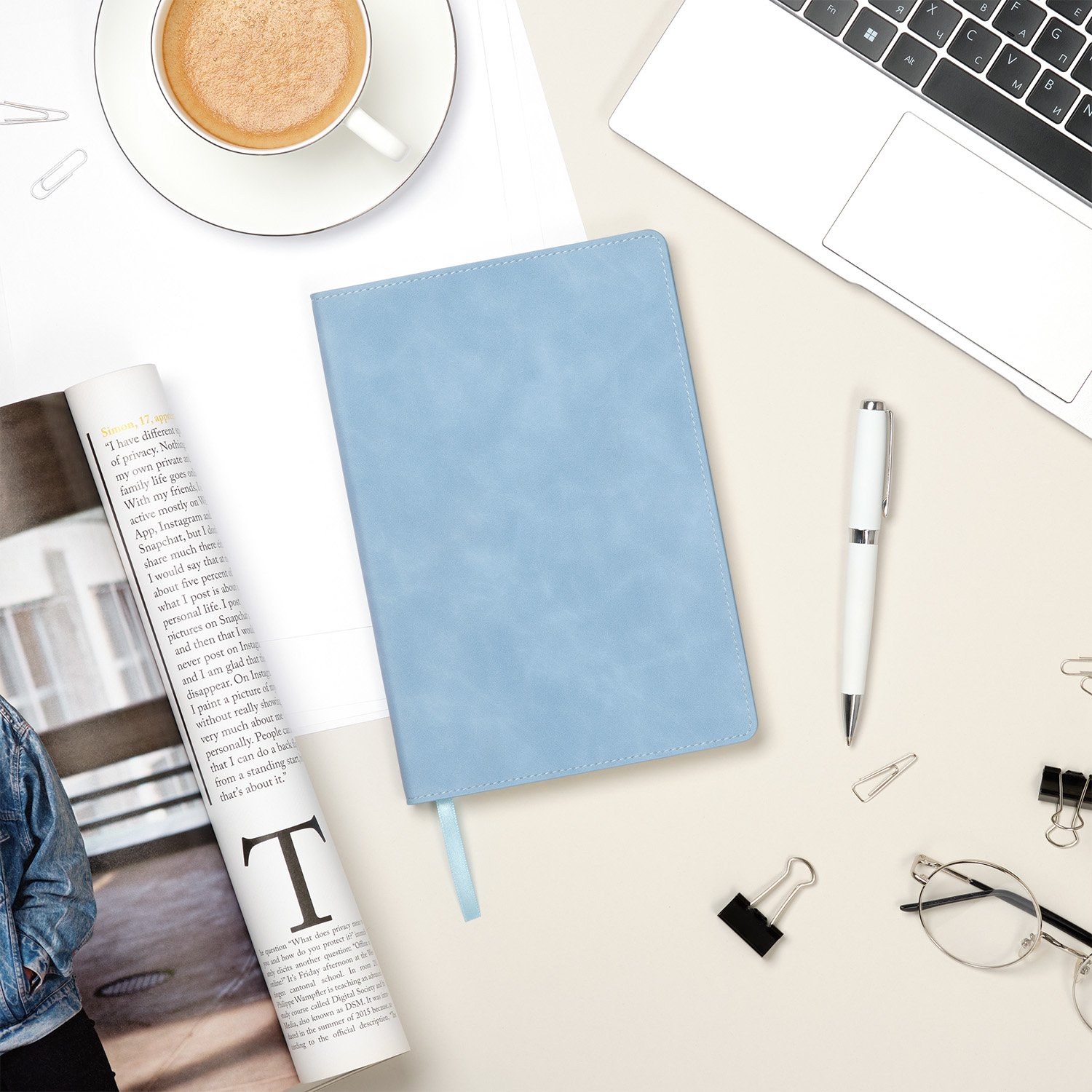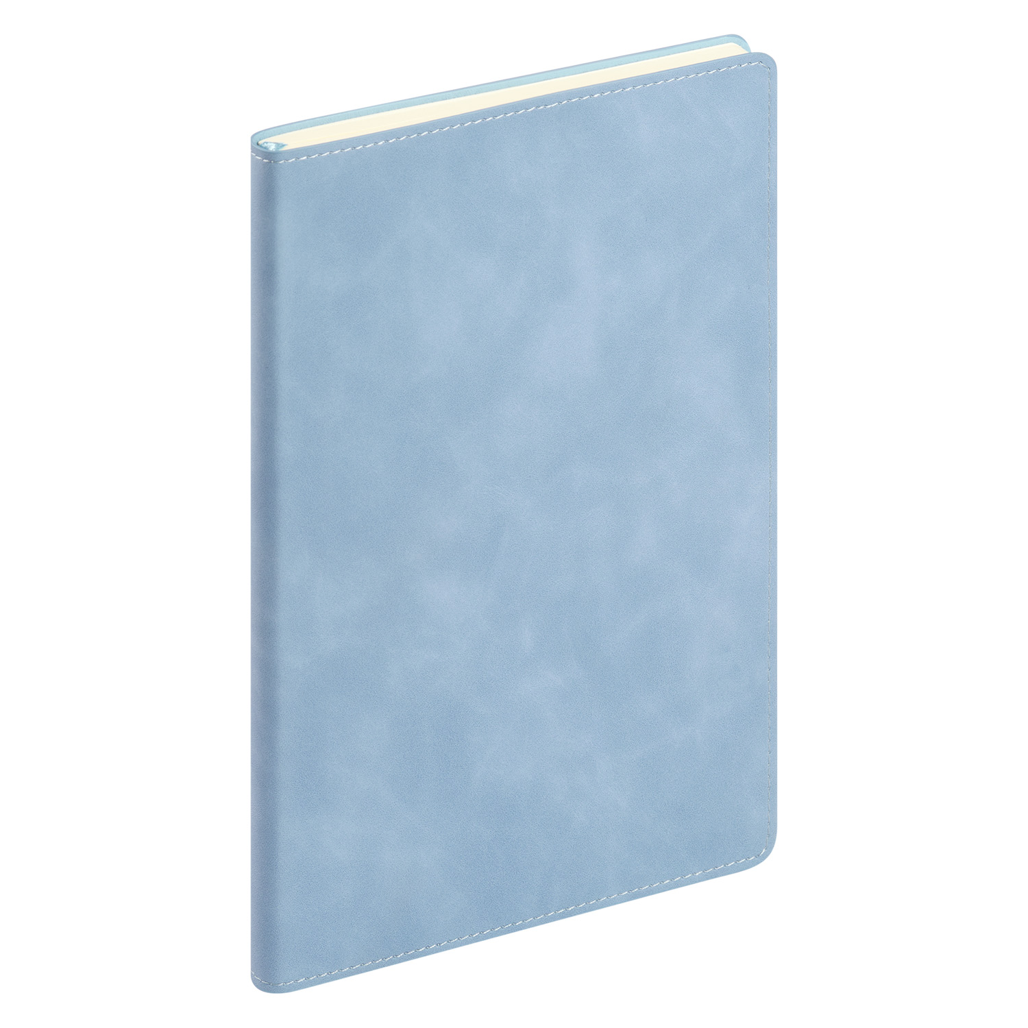 Недатированный ежедневник в гибкой обложке из качественной искусственной кожи со скругленными уголками. Обложка выполнена из мягкого шелковистого материала, по тактильности напоминающего замшу. Прошивка по периметру в тон материала обложки. Форзац,нахзац и срез кремового цвета. Страницы со скругленными уголками из гладкого шелковистого офсета, кремовые. Одинарное атласноеляссе 6 мм.