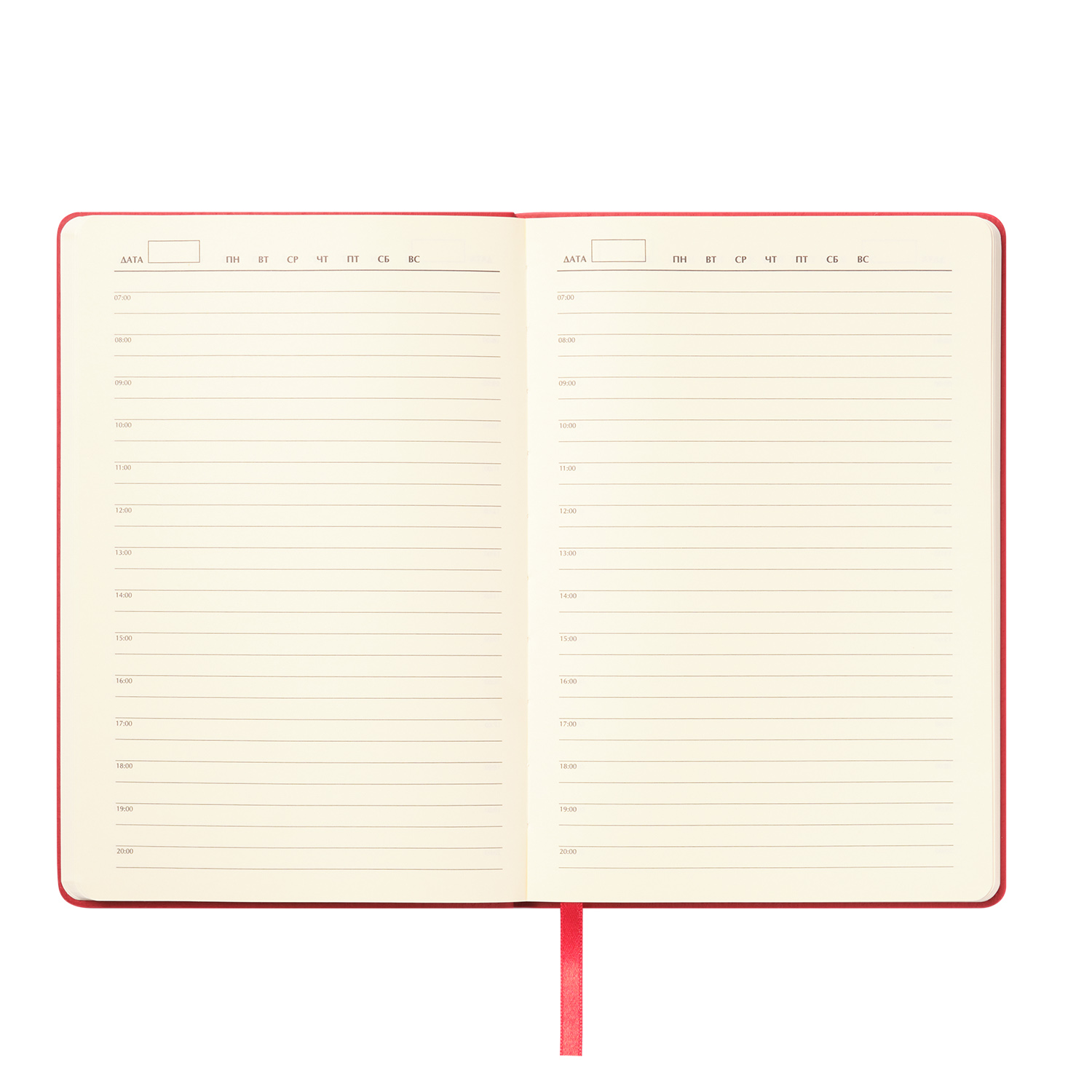 Недатированный ежедневник в гибкой обложке из качественной искусственной кожи со скругленными уголками. Обложка выполнена из мягкого шелковистого материала, по тактильности напоминающего замшу. Прошивка по периметру в тон материала обложки. Форзац,нахзац и срез кремового цвета. Страницы со скругленными уголками из гладкого шелковистого офсета, кремовые. Одинарное атласноеляссе 6 мм.