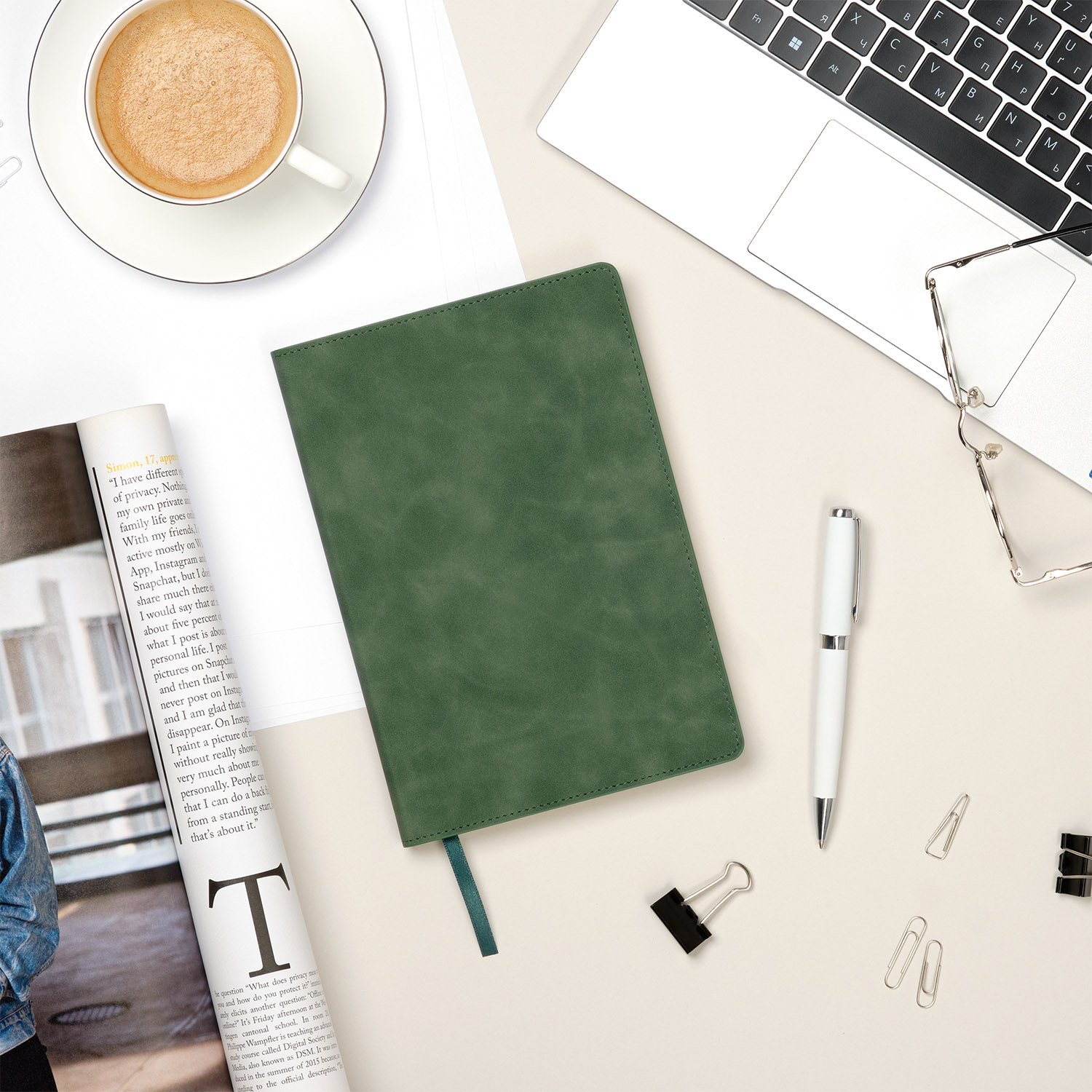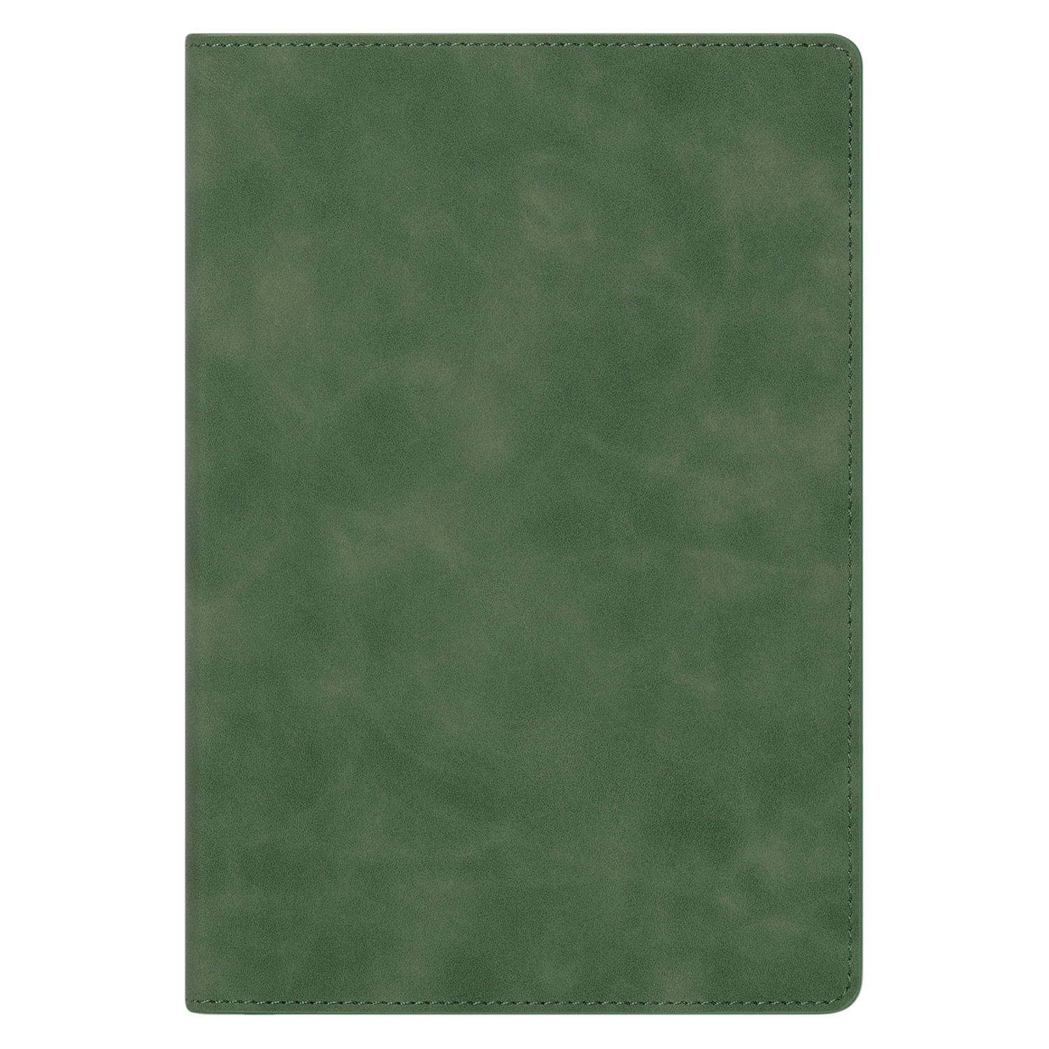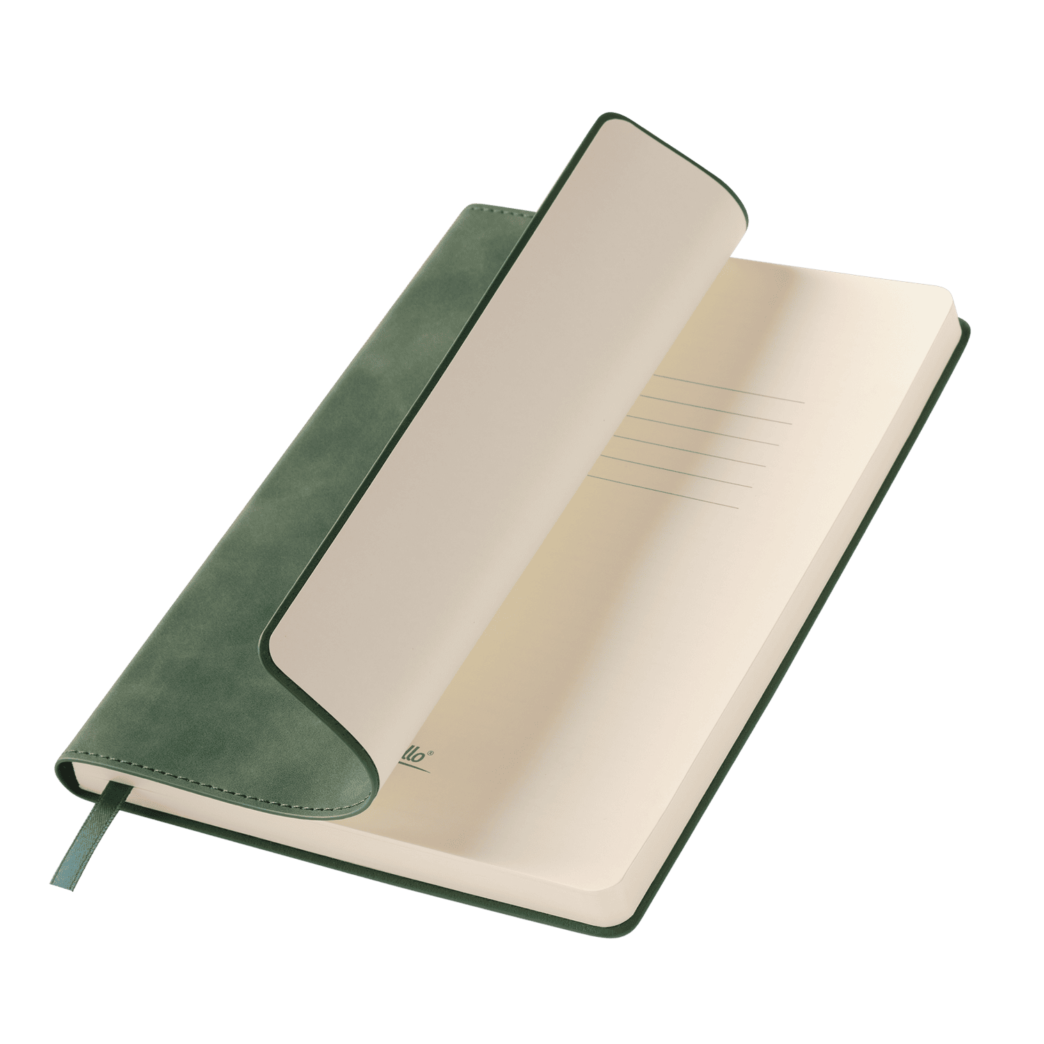 Недатированный ежедневник в гибкой обложке из качественной искусственной кожи со скругленными уголками. Обложка выполнена из мягкого шелковистого материала, по тактильности напоминающего замшу. Прошивка по периметру в тон материала обложки. Форзац,нахзац и срез кремового цвета. Страницы со скругленными уголками из гладкого шелковистого офсета, кремовые. Одинарное атласноеляссе 6 мм.
