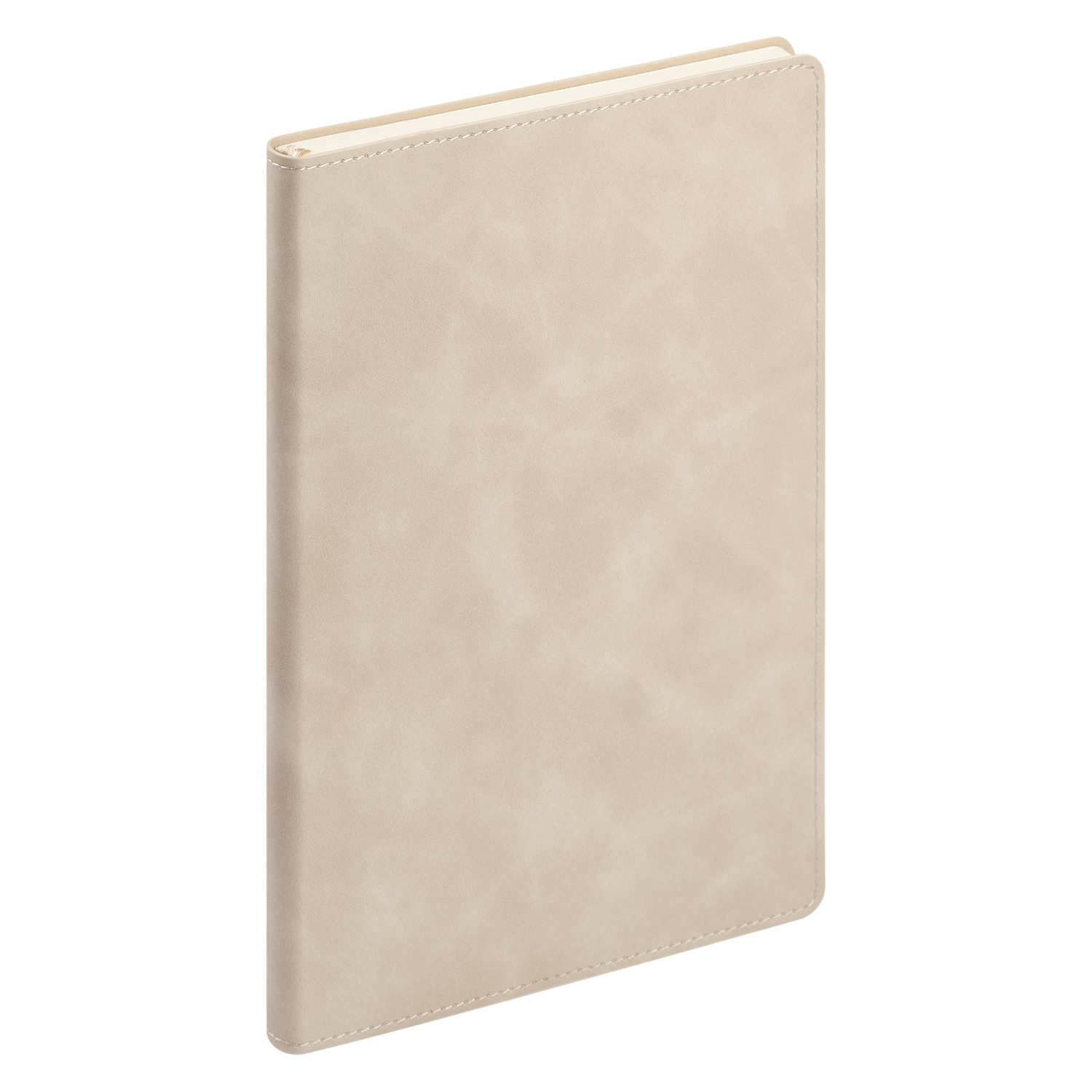 Недатированный ежедневник в гибкой обложке из качественной искусственной кожи со скругленными уголками. Обложка выполнена из мягкого шелковистого материала, по тактильности напоминающего замшу. Прошивка по периметру в тон материала обложки. Форзац,нахзац и срез кремового цвета. Страницы со скругленными уголками из гладкого шелковистого офсета, кремовые. Одинарное атласноеляссе 6 мм.